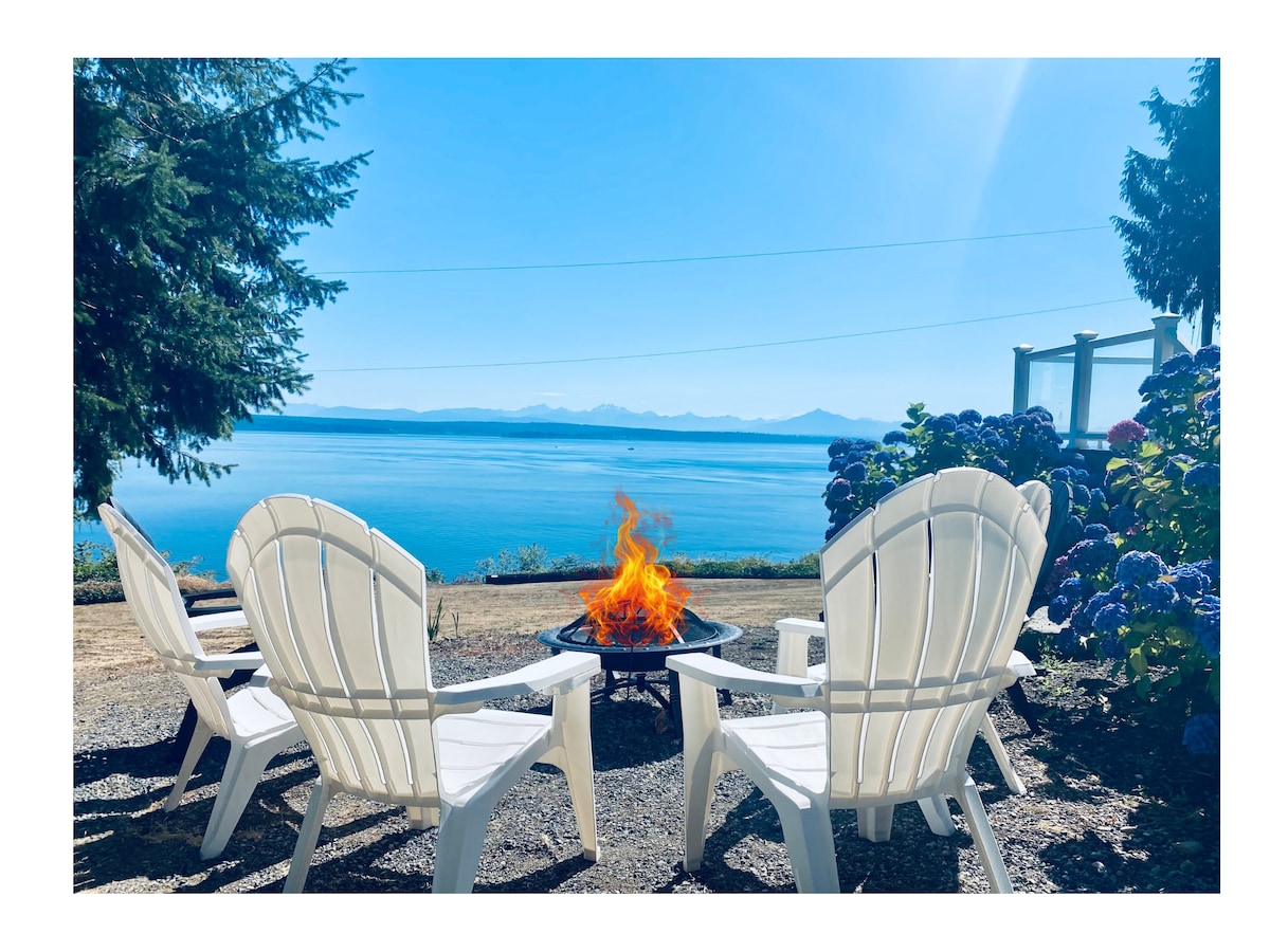 Desfrute de vistas deslumbrantes do Sound e das Montanhas Olímpicas enquanto relaxa em um dos três decks de nossa casa à beira-mar recentemente remodelada. Nossa moderna casa de praia possui três quartos espaçosos no andar de cima em torno de uma área de estar separada, uma grande sala de estar e jantar no andar de baixo e banheiros em ambos os níveis. Você pode avistar focas, águias americanas e baleias enquanto caminha ao longo dos degraus da praia sem margem da nossa porta da frente. Saboreie vinho ao redor da lareira de propano enquanto desfruta do magnífico pôr do sol.