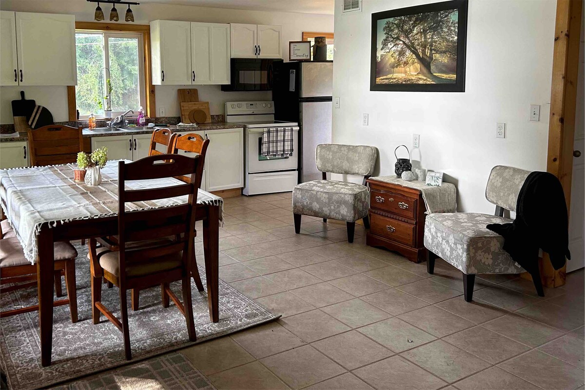 Relaxe com toda a família neste alojamento tranquilo. Este belo espaço com 3 quartos, 1 casa de banho, (1 cama queen), (1 cama de casal), (1 cama individual) está localizado no coração das belíssimas 1000 Ilhas. Localizada a 5 minutos da fronteira com os EUA. Esta casa de campo/casa tem ar condicionado/aquecimento, fogão a lenha, máquina de lavar roupa, máquina de lavar louça, TV, Wi-Fi, grelhador a gás, máquina de café, torradeira, micro-ondas, fogão com forno e frigorífico/congelador. Também está disponível uma doca para o seu pequeno barco ou seadoo. Canoa e coletes salva-vidas fornecidos.
