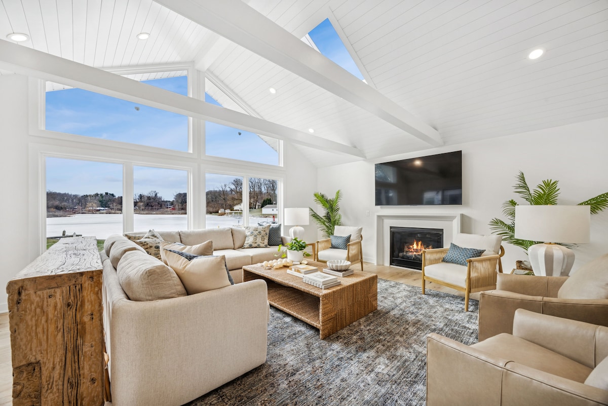 Aunt Betty’s Lakeside Abode offers 3 king bedrooms, 2.5 baths, 2 twin cots, west-facing beautiful Stone Lake views, screened porch with gas fire, lakeside terrace, and year-round hot tub. Enjoy multiple gathering areas, a steam shower, ping-pong. Perfect for families, couples, or groups exploring LaPorte County, Indiana Dunes or wineries, breweries, trails surrounding Lake Michigan. Sleeps 8, or book with Uncle Larry’s Lake Place next door for larger groups and shared lakefront fun!