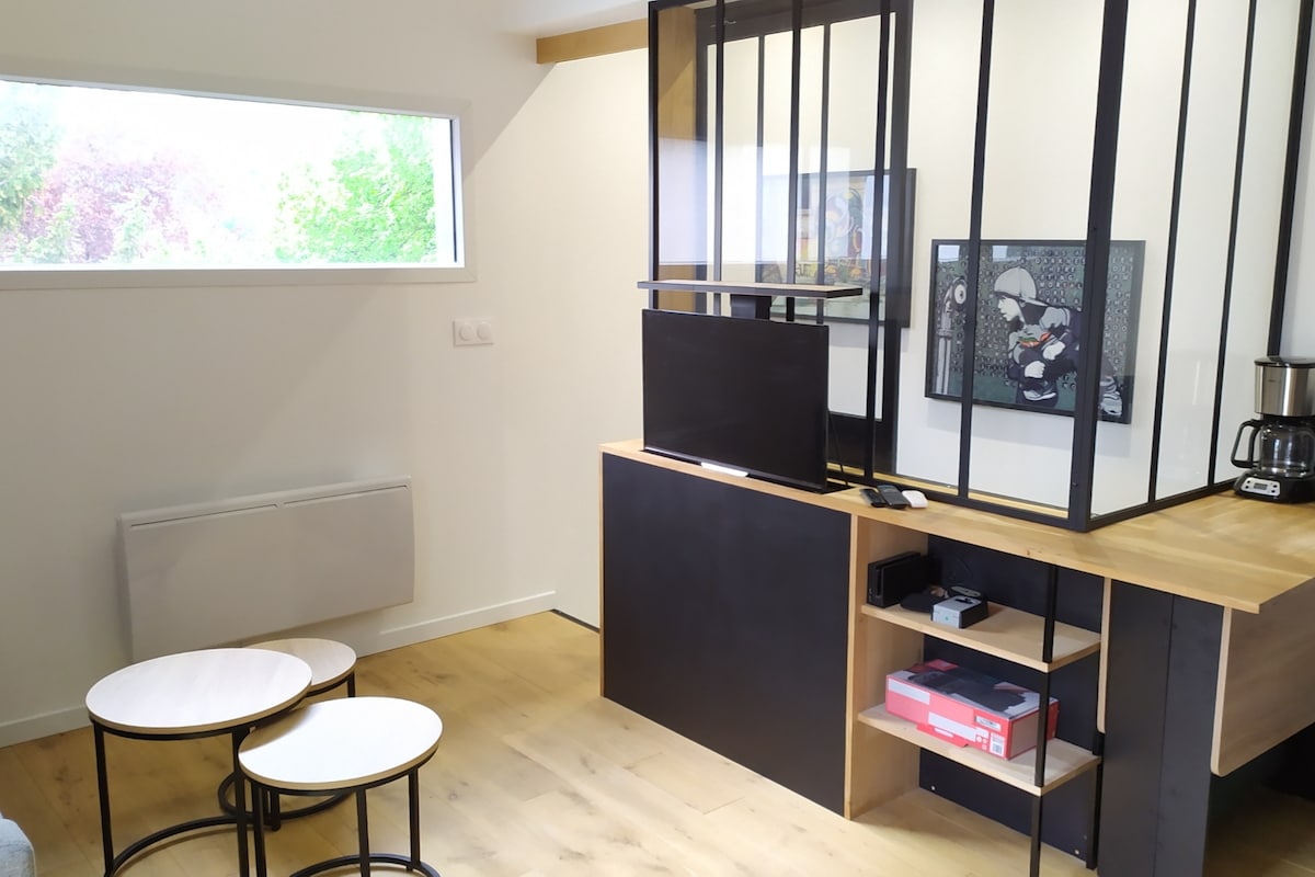 Bienvenue dans notre charmant appartement cosy à Cournon d’Auvergne ! Situé à 5 minute du Zénith de Cournon d’Auvergne. Profitez d’un séjour relaxant avec un parking à proximité et un accès facile aux transports en commun. Notre espace soigneusement aménagé vous offre tout le confort nécessaire, agrémenté d’une expérience luxueuse avec un spa privé et une vaste douche à l’italienne. Profitez d’un écran plat de 200cm pour expérience cinématographique immersive