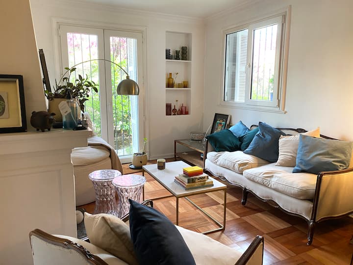 Casa de 1.000 pés quadrados maravilhosamente restaurada de 1936 com jardim privado de 900 pés quadrados com dois terraços, arte encantadora e coleção de antiguidades. A casa está localizada numa zona residencial tranquila, mas a poucos quarteirões do famoso bairro de Barrio Italia, uma zona comercial vibrante, cheia de restaurantes, lojas de moda e lojas de antiguidades. A 10 minutos a pé do metro (Santa Isabel, Linha 5), a 2 minutos da estação de autocarros mais próxima e a 25 minutos de táxi do aeroporto.