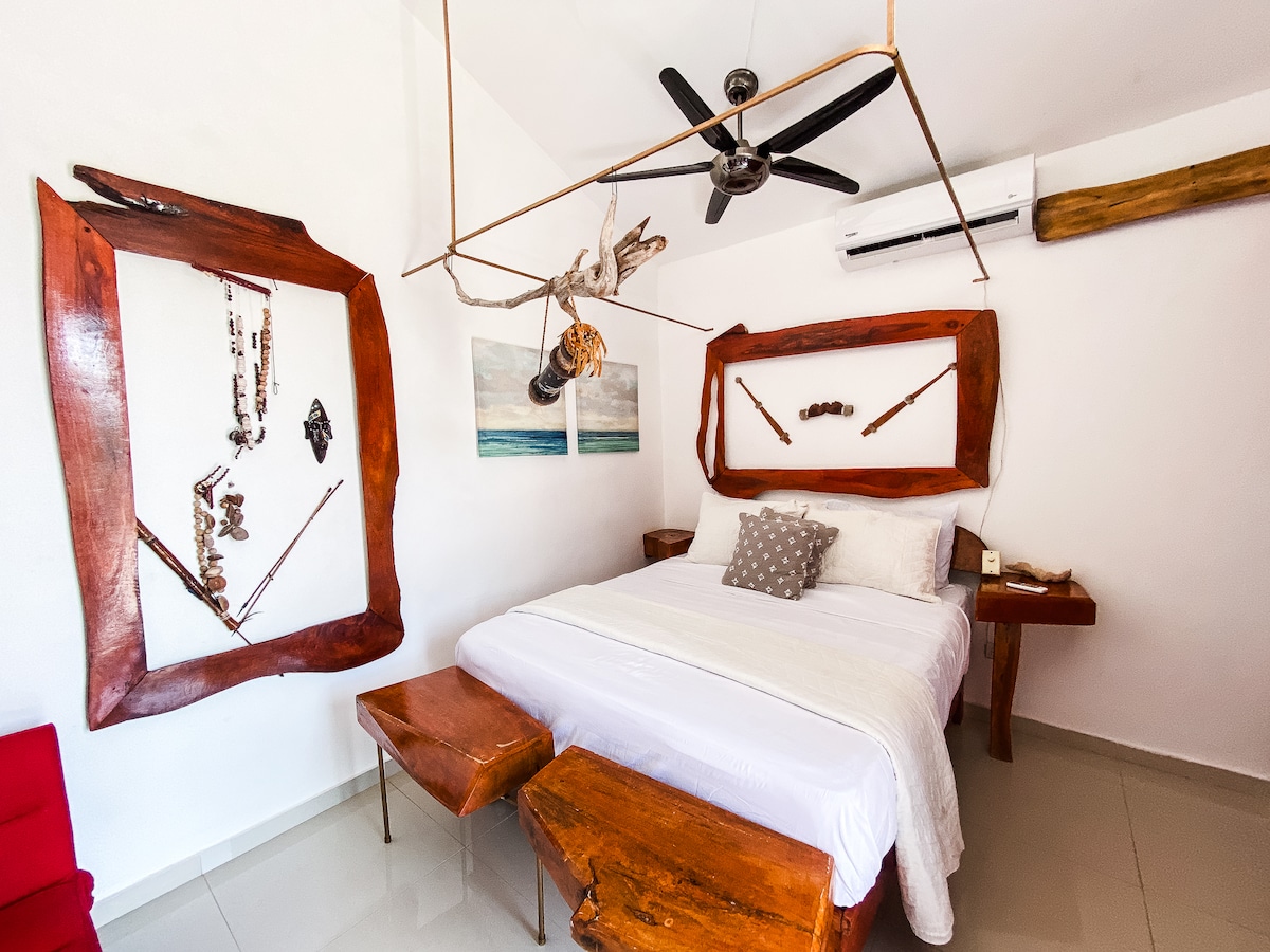 Quarto romântico encantador, perfeito para casais que procuram uma experiência única numa moradia com a sua própria magia. Desfrute de vistas espetaculares no coração da Baía de Rincón, reconhecida entre as 25 mais bonitas do mundo, em frente ao Parque Nacional de Cabo Cabrón. Pôr do sol inesquecível espera por si, tranquilidade e ligação total com a natureza. Com mais de 15 anos de experiência, tratamos de todos os detalhes para tornar a sua estadia perfeita.