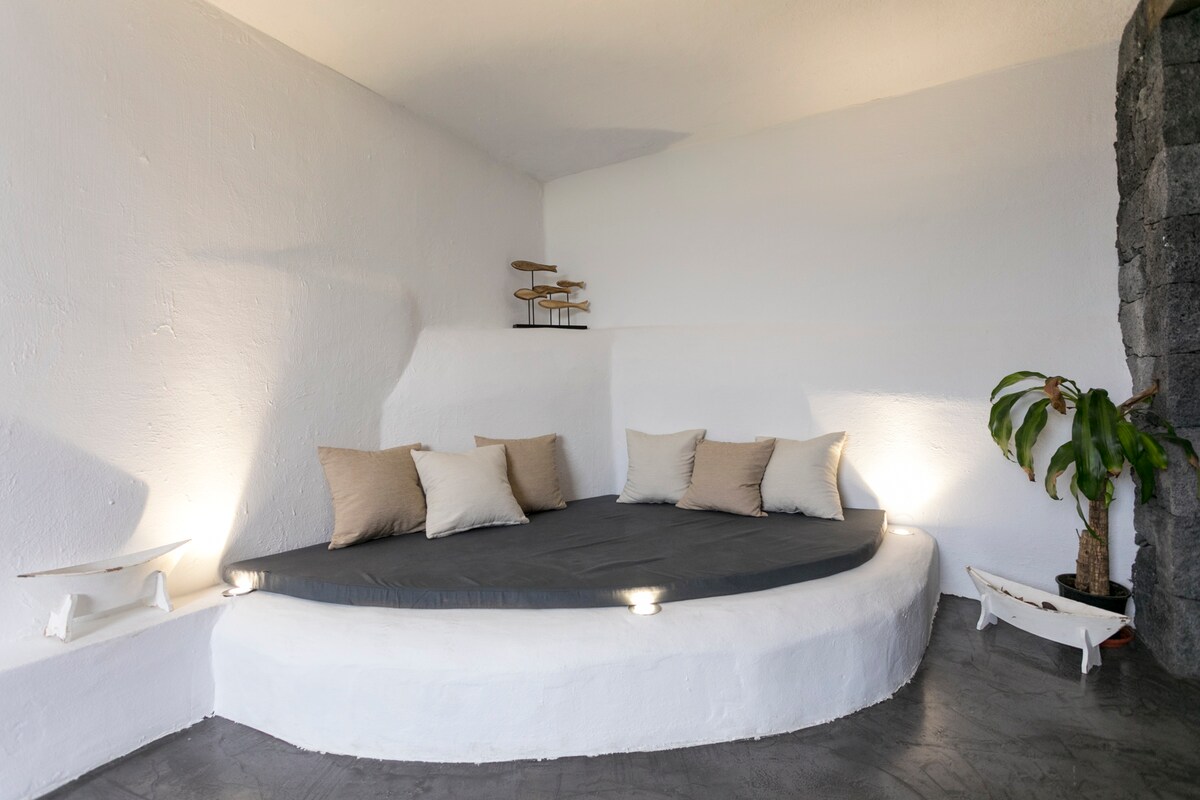 Sala de cavernas (ex-aljibe) feita por conjugação de pedra, microcimento, aço, vidro e terra. O metro localizado tem um quarto, uma sala de estar e uma casa de banho. Um pequeno oásis no qual eles certamente terão o desejo de descansar. Todos os hóspedes podem usar: o espaçoso terraço em torno da casa com vista para o mar e para a montanha, a cozinha totalmente equipada, duas jacuzzis e duas piscinas exteriores. O preço inclui o pequeno-almoço continental para duas pessoas e o uso de todos os serviços.