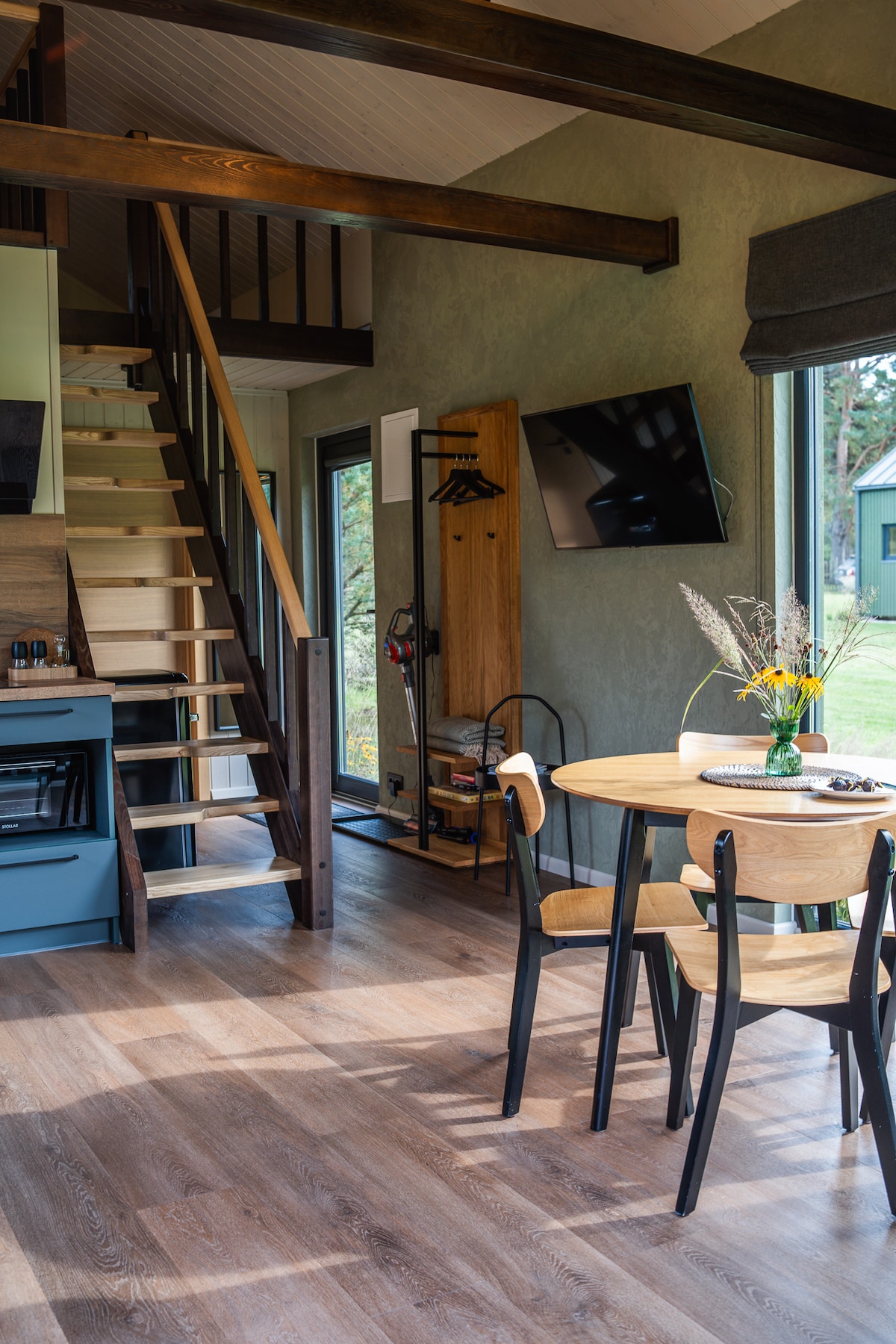 Tiny House Cesis – Esta cabana pequena, mas cuidadosamente concebida, oferece tudo o que precisa para uma escapadela relaxante: ✨ Espaço para 2 adultos e 2 crianças. 🍳 Uma cozinha totalmente equipada com fogão, frigorífico e micro-ondas. 🌿 Um terraço privado com grelhador, perfeito para desfrutar de refeições ao ar livre 🎠 Baloiços e um trampolim para os mais pequenos A localização é outro ponto alto: a apenas 1,7 km da Cidade Velha de Cēsis, da estação ferroviária e do terminal rodoviário.