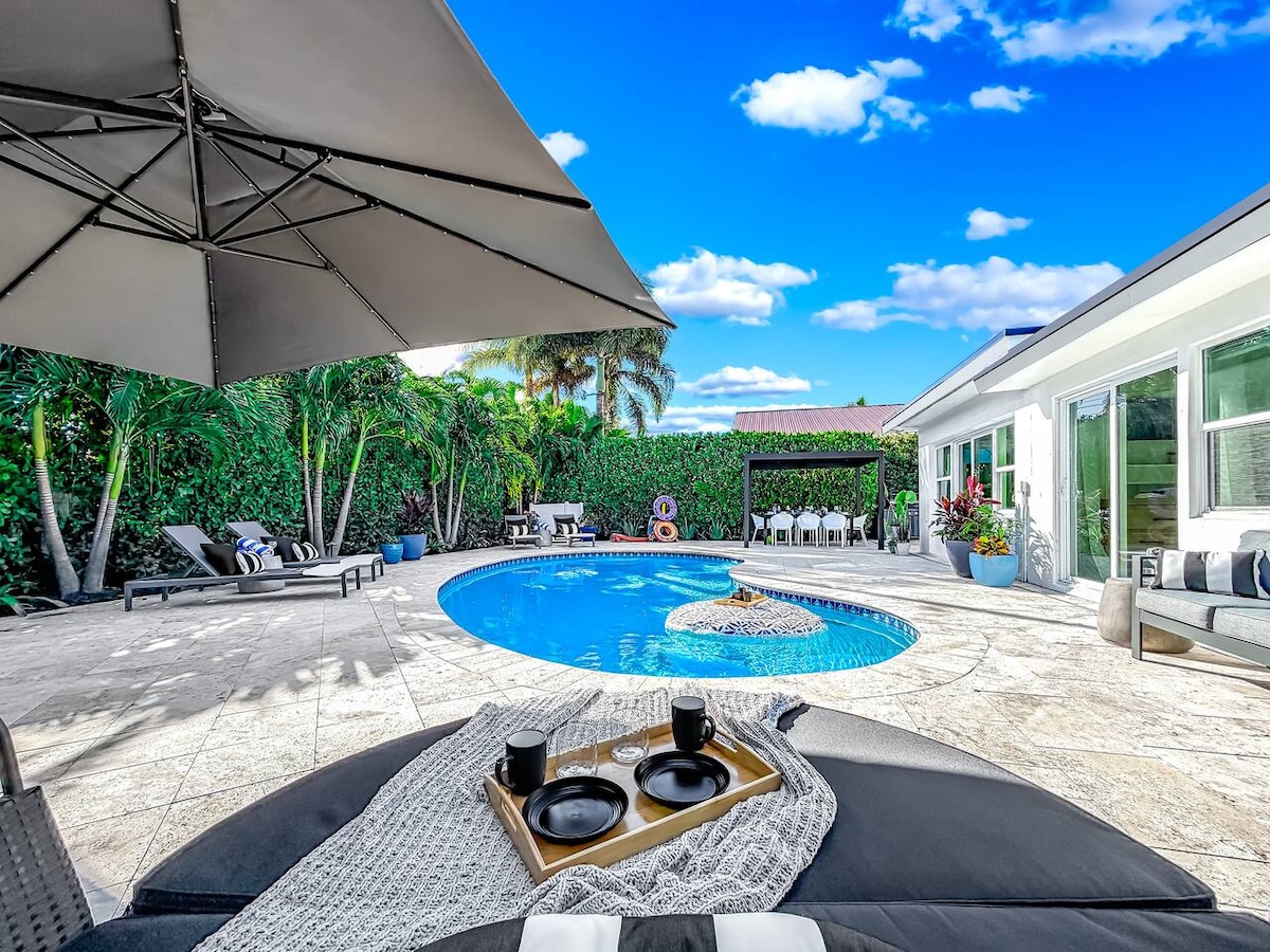 Bem-vindo à Villa Blanca, um estúdio luminoso e arejado que oferece móveis macios e comodidades de alta qualidade. Projetado meticulosamente com pisos de madeira, acabamentos elegantes e toques de cor, esta joia escondida pode ser sua. Top 5% de casa. ♥ Máquina de lavar e secar A ♥ 15 minutos do aeroporto FLL, Port Everglades, Hard Rock Casino e Chase Stadium ♥ 10 minutos para o centro da cidade/restaurantes/praia Entrada ♥ privada e check-in autónomo ♥ Estacionamento gratuito fora da rua. ♥ WFH ready ♥ Cadeiras de praia e toalhas