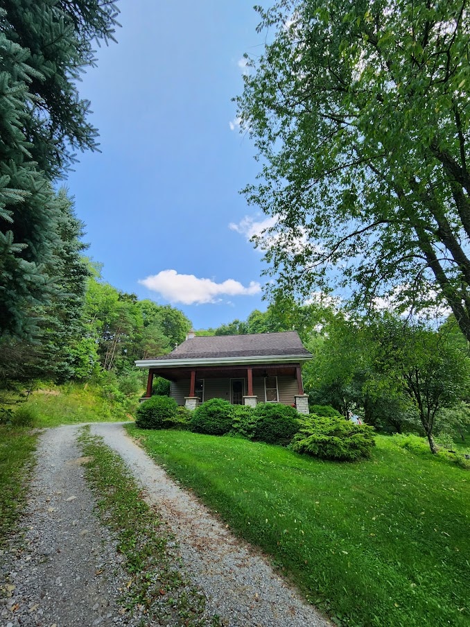 Fuja para uma cabana em A preta impressionante e moderna situada em mais de 3 acres de floresta de madeira nobre intocada. Damos-lhe as boas-vindas à The Slate & Cedar A-Frame, concebida com estilo e serenidade pelo afamado arquiteto Art Vandelay. Este refúgio acolhedor oferece a combinação perfeita entre isolamento e comodidade. Embora se sinta a mundos de distância, esta propriedade fica a poucos minutos do centro histórico de Berkeley Springs, repleto de lojas exclusivas, restaurantes locais e atrações culturais.