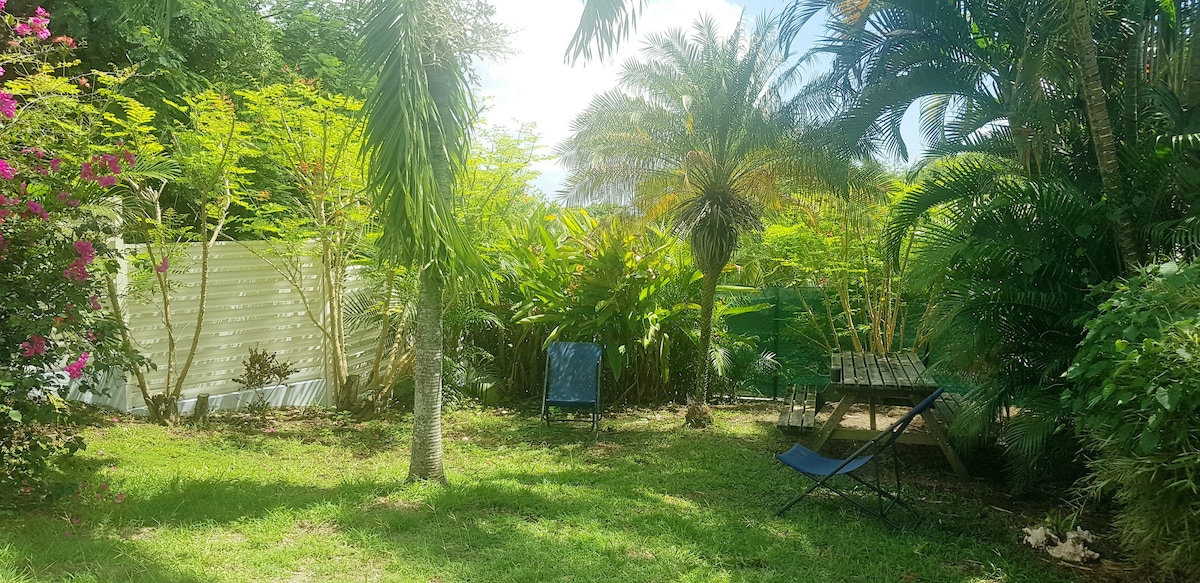 Studio climatisé calme avec jardin, plage à pied