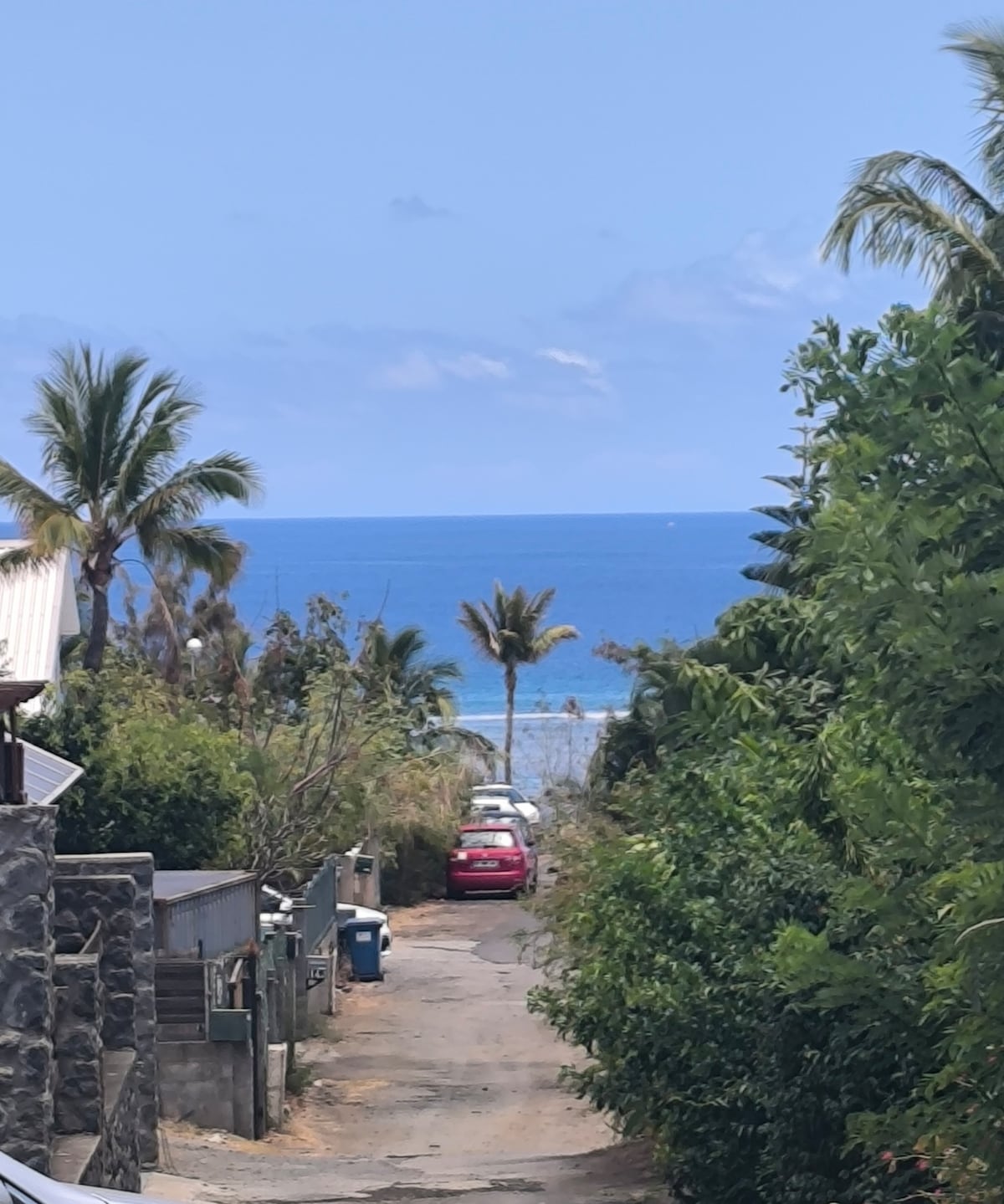 Tikaz Grand Bois em Saint-Pierre, na junção dos bairros típicos de Terre Sainte, Terre Rouge e Grand Bois....a 5 minutos da praia mais bonita da ilha, Grand Anse. Vista para o mar, piscina privada, terraços e jardim, estacionamento privado e seguro. 1 quarto com cama de 160 cm e espaço de escritório. 1 sala de estar com sofá-cama (cama de 140 cm de qualidade), TV Android grande, cozinha totalmente equipada, áreas de jantar interna e externa, banheiro completo.