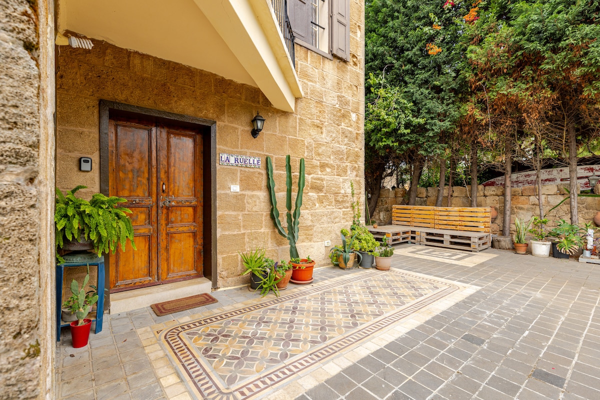 Composto por 2 quartos, uma cozinha, uma casa de banho e 2 espaços exteriores privados: um jardim e um terraço. Electricidade 24/7 Localização incrível, pois fica a 5 minutos de carro da praia e a menos de 10 minutos das principais cidades vizinhas: Batroun e Byblos. Rachana é muito conhecida pelas suas esculturas e pelo seu museu de esculturas ao ar livre. Casal muito gentil e caseiro que vive no apartamento superior. Os anfitriões são muito acolhedores e adoram estrangeiros!