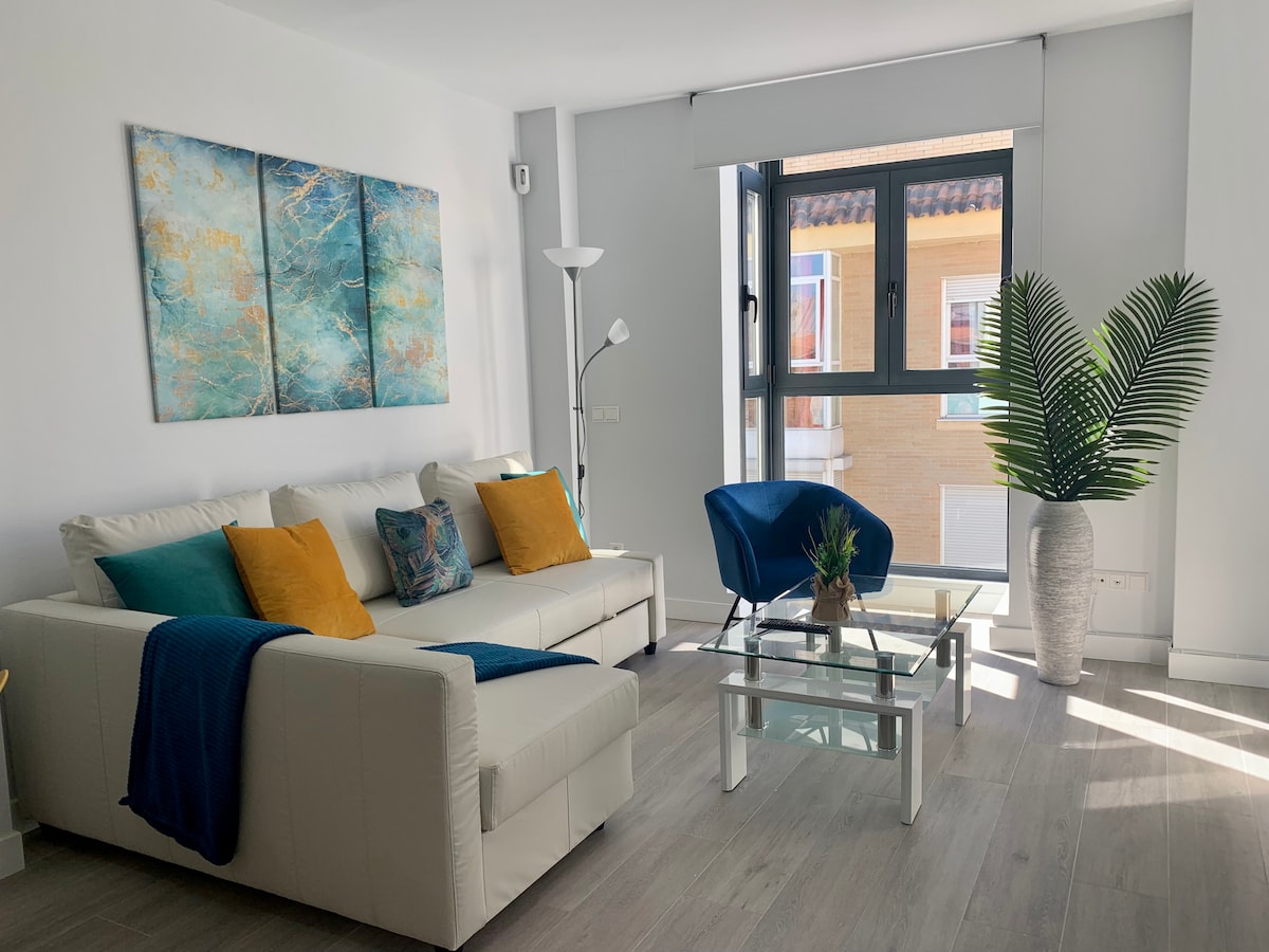 Newly renovated designer apartment (50m2) Direct connection to airport, all central train & bus transport hubs (ie. Atocha, Chamartin, Estación Sur). Perfect to visit nearby towns such as Toledo, Segovia, Alcalá de Henares, Aranjuez, El Escorial. Metro & Suburban train within 5 mins walking time. Near Museums such as Reina Sofia Museum which is part of the city center. Great for Creatives, families, tourists and remote workers. 26th December only early check-ins.