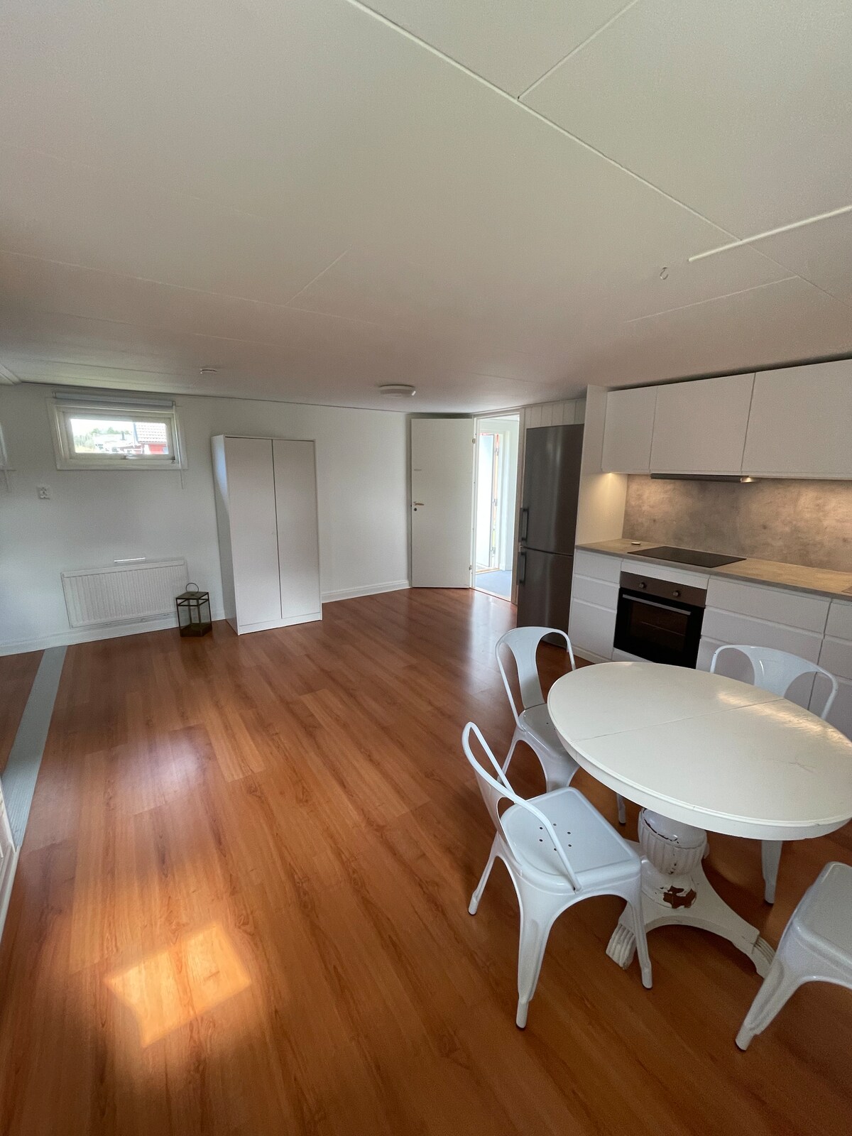 A acomodação é uma parte separada da casa, com entrada privativa. É composto por um quarto com uma cama de casal e uma grande sala de estar com um beliche, cozinha e sala de estar. O banheiro tem vaso sanitário, chuveiro e máquina de lavar. Um grande terraço com vista para o lago, com assentos sob uma pérgula, e os hóspedes têm acesso exclusivo a todo o terraço. É possível alugar um barco a remo e coletes salva-vidas. Toalhas e lençóis não estão incluídos, mas estão disponíveis para aluguel por 150 kr/conjunto. A limpeza não está incluída na acomodação.