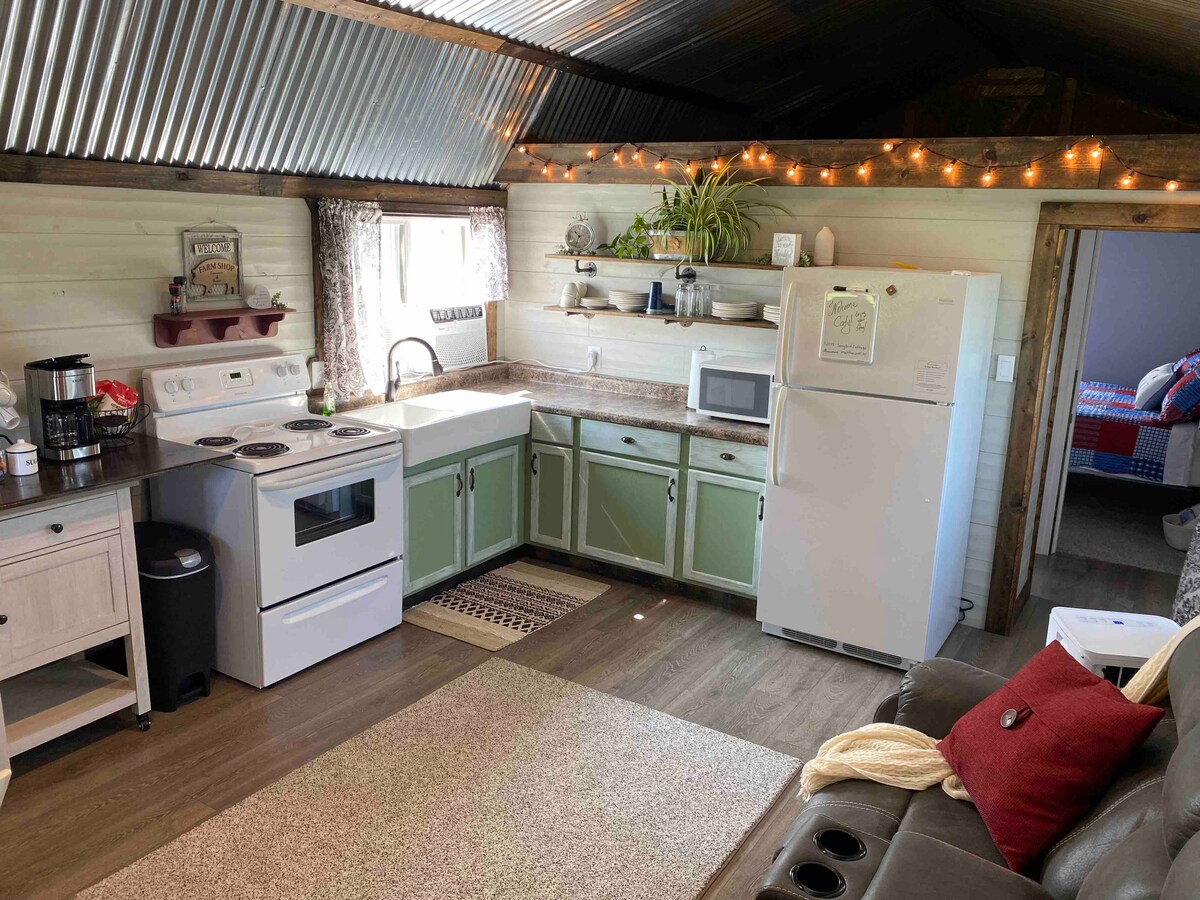 This solid concrete tiny home was once this ghost town's fire house! It's been sensibly converted and turned into a stylish and comfortable living space. Despite being solidly out in the country, it's a quick drive to Blissfield and Adrian, or even Ann Arbor or Toledo. There's a small and peaceful outdoor seating area, combo washer/dryer, full kitchen, and multiple televisions. The home has an EV Charger, and a Tavern Next door, set to open soon!