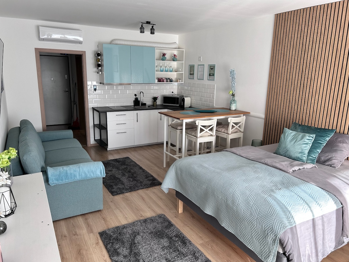 Numa das partes mais bonitas do Lago Balaton, em Fonyód, no belo passeio marítimo de Szaplonczay, um pequeno apartamento amorosamente sonhado. Queremos que se sinta em casa aqui e saia com a sensação de que "tenho de voltar aqui". :) ❤️ Tudo o que precisa para relaxar: uma cozinha totalmente equipada, cama confortável, TV, livros incríveis (se quiser ler:)), área de estudo, lareira, ar condicionado, persianas elétricas. O apartamento também tem um espaço de estacionamento gratuito privado.