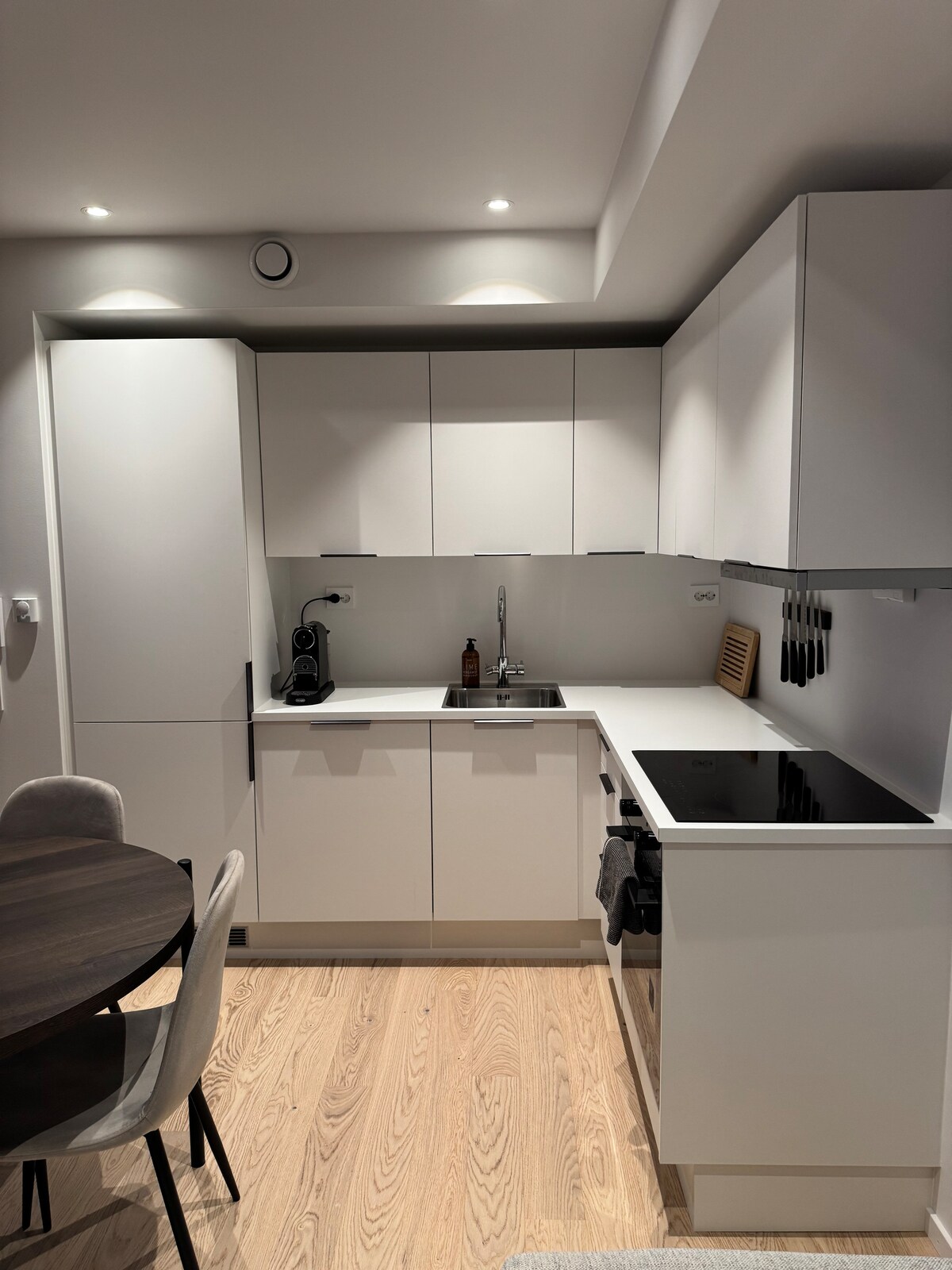 Denne flotte og sentrale leiligheten ligger i 2 etasje og er 43 m2. Leiligheten inneholder gang, soverom, bad og stue med kjøkkenløsning. Det er også en privat balkong. A área de Vervet é um bairro recém-desenvolvido em Tromsø, com restaurantes e cafés ao lado. O centro da cidade fica a apenas 5 minutos a pé dos apartamentos, o mesmo para a Catedral do Ártico do outro lado da ponte. O prédio de apartamentos é moderno e colocado ao lado do porto.