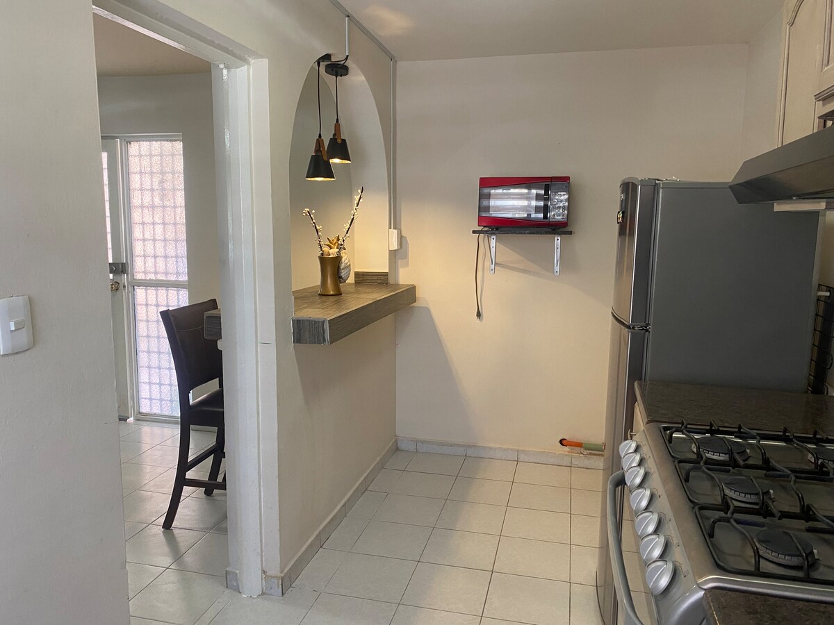 Este apartamento tem uma excelente localização a 3 quarteirões da avenida principal da cidade ( blvd miguel Alemán) e saídas rápidas para Torreón. Fica a 2 quarteirões de um hospital e a colónia tem vigilância constante É uma área residencial muito tranquila, onde pode encontrar uma variedade de bancos, restaurantes e lojas em geral. O apartamento tem um quarto, mas aconchegante e com tudo o que precisa para a sua estadia.