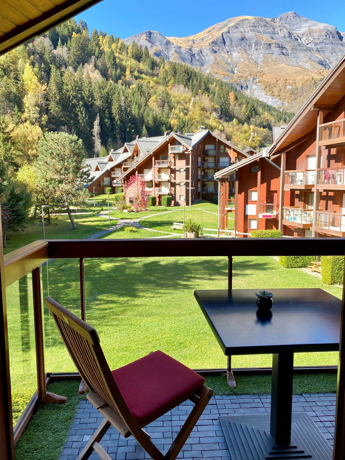 Duplex de 50 m2 com varanda no coração da aldeia para 4 a 5 pessoas localizado numa residência tranquila no 2.º andar com elevador. Estacionamento interior privado. O acesso à área de esqui é permitido por shuttles gratuitos e regulares que servem o teleférico de Lay e Pontet. A paragem do autocarro está localizada a 150 metros do apartamento na praça da aldeia (paragem Chef-lieu).