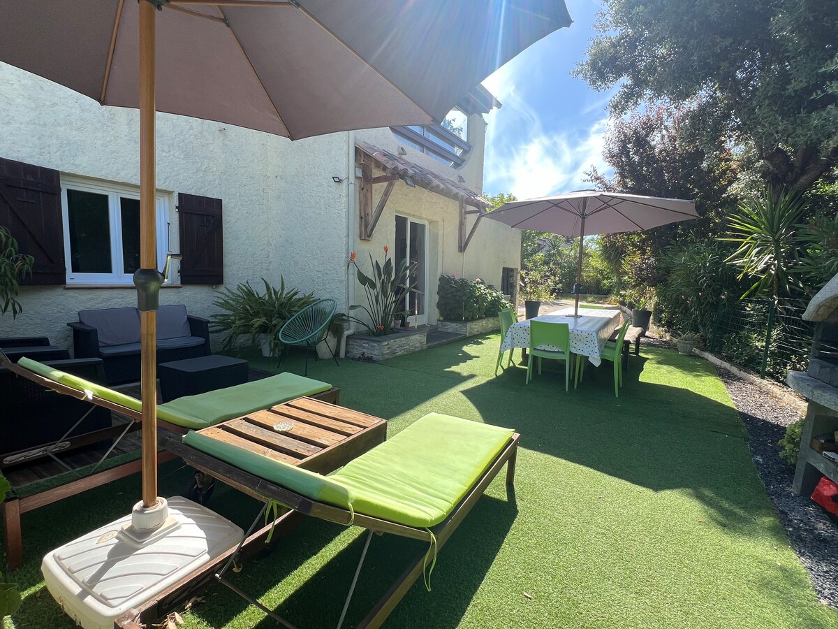 Porticcio a 12 minutos do aeroporto, a 20 minutos do porto e a 900 metros das praias, lojas e restaurantes em uma residência tranquila, você terá à sua disposição 28 m²: 2 quartos, 1 banheiro e uma área de preparação de refeições. Não há sala de estar. Terraço com guarda-sol + guarda-sol para a praia. Mesa e cadeiras. Estacionamento com sombra em pátio fechado. Roupa de cama e toalhas fornecidas, exceto para a praia. Crianças menores de 8 anos não são aceitas por razões de segurança e tranquilidade.