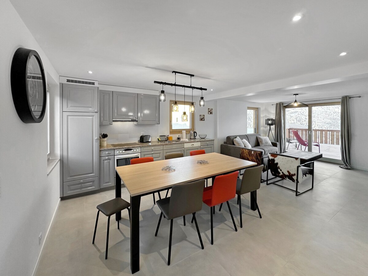 Cães são bem-vindos.🐶 Carregador Tesla disponível gratuitamente. Às portas da estação de Crans-Montana, o P'tit Chalet é um lugar único onde é bom ficar. Neste estúdio independente de 35 m² com decoração elegante, você encontrará um ar de férias e tranquilidade. Nós nos sentimos bem. O grande terraço privativo com churrasqueira é ideal para relaxar. Oferecemos uma geleia caseira e uma pequena garrafa de vinho local.
