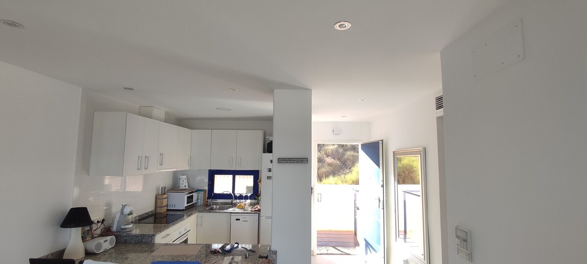 apartamento de dois quartos totalmente equipado, incluindo 1 lugar de estacionamento no estacionamento, ar condicionado centralizado. Pisos de mármore branco, porta blindada. A 100 m da praia de Cantal, área de chiringuitos e serviços na rua. Ideal para descansar e ter todos os serviços sem a necessidade de usar um carro. Está localizada numa pequena residencial de 14 casas, com piscina, jardins, garagem e gazebo para o Mar Mediterrâneo. Ambiente familiar.
