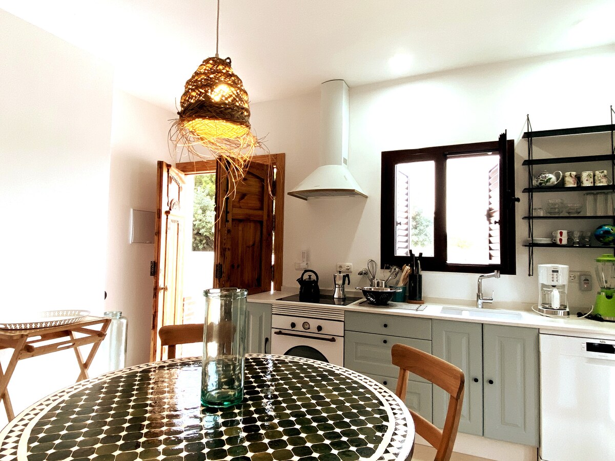 Belo cortijo num grande domínio, composto por 2 casas totalmente renovadas. Contemporâneo e aconchegante, preservando o seu caráter espanhol. 2 Quartos com camas box spring duplas (2X90) e um sofá-cama duplo na área de estar, A/C e internetTV de ecrã plano (com todos os canais), WI-FI em todo o domínio, casa de banho com lavatório, chuveiro de efeito chuva e sanita separada. Uma piscina de 120m2 para partilhar com a outra casa. Tranquilamente localizado no Parque Natural Cabo de Gata, a 4 km do mar e da aldeia.