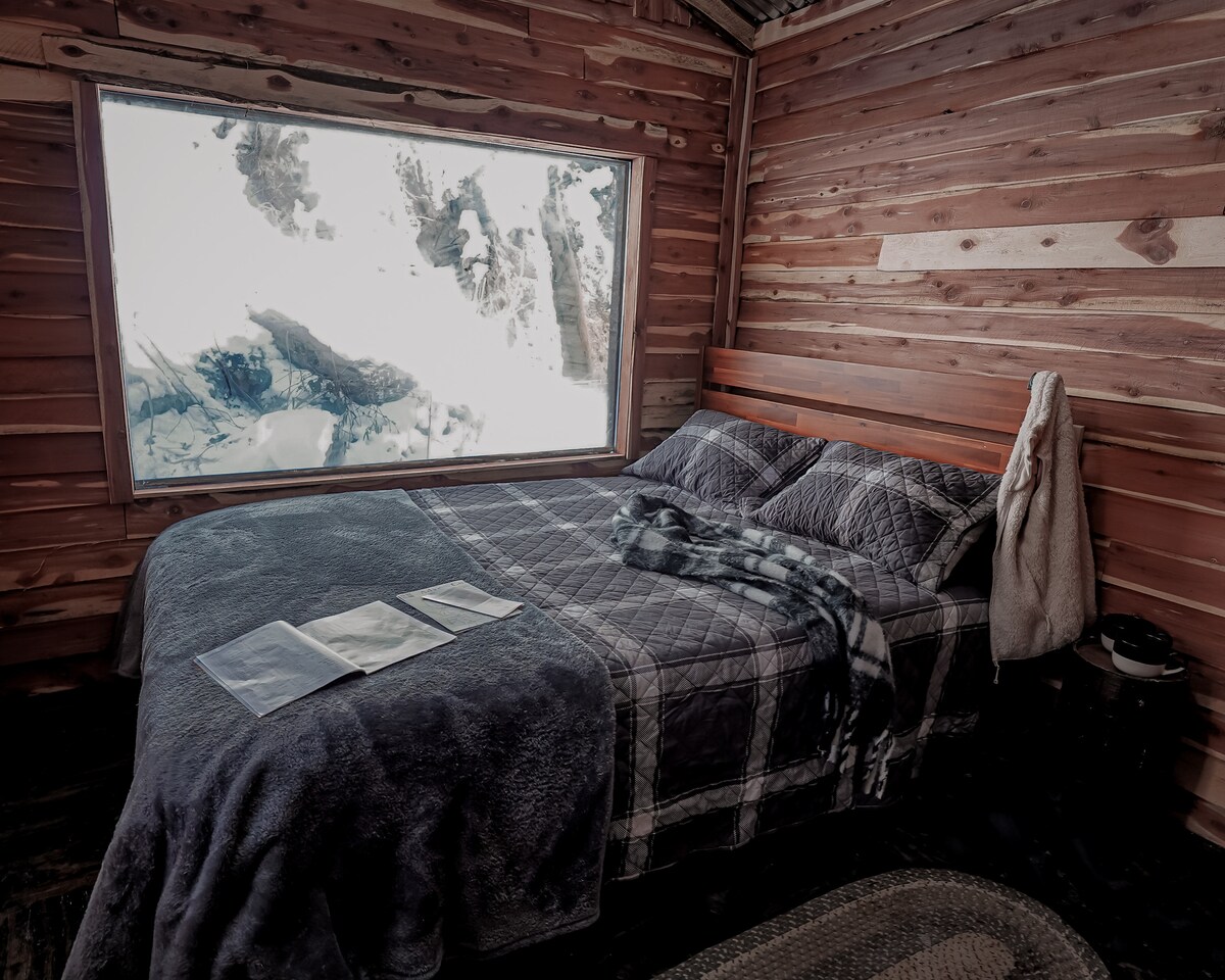 Chalé com glamping | Janela enorme | Sobre um riacho