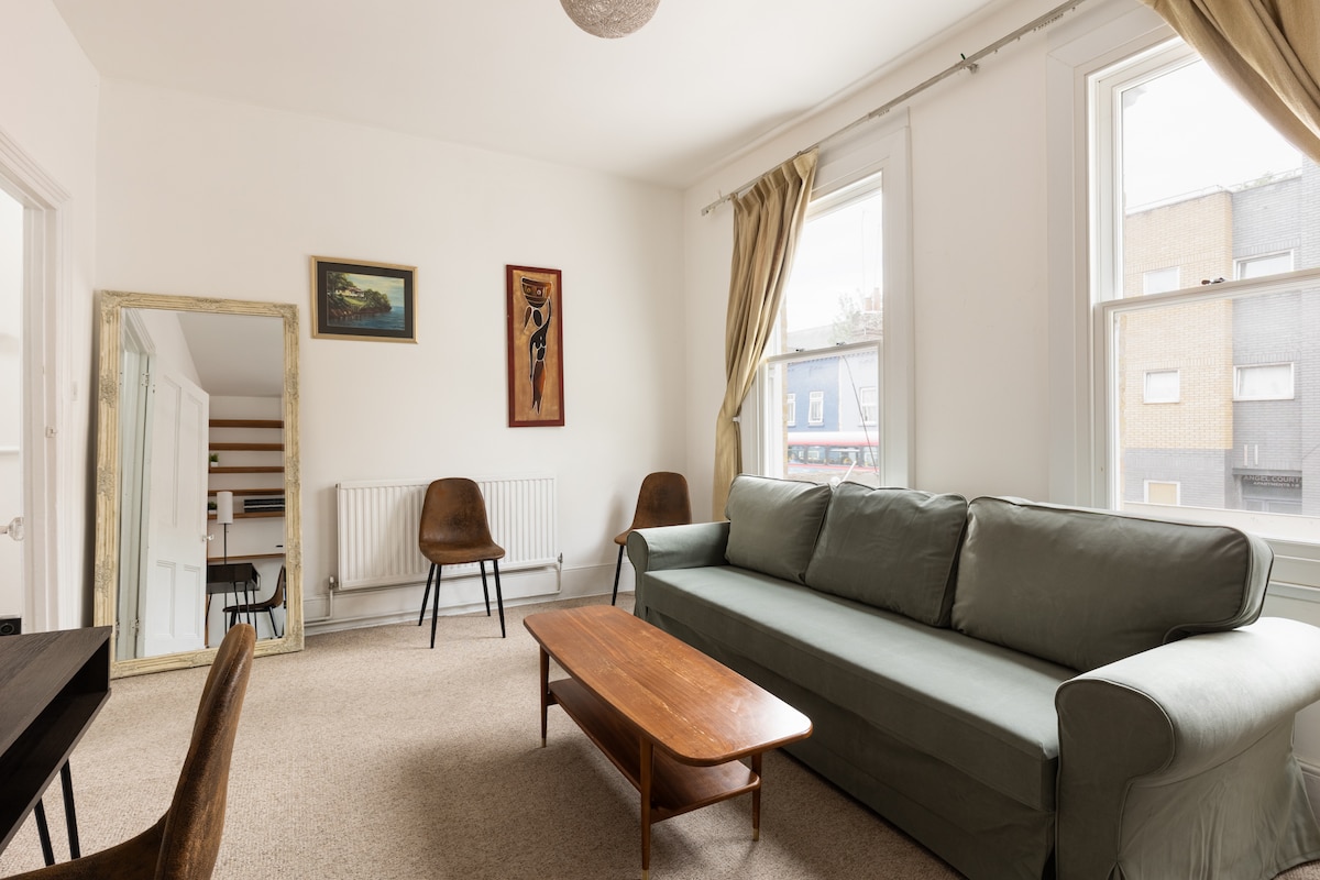 Accessed through a charming Victorian family home. This bright and intimate apartment offers a stylish retreat with a chic, monochromatic interior. Thoughtfully designed with impeccable attention to detail, the space features beautiful tiled finishes bathroom, graceful arched doorways, and characterful stripped wooden floors. Step outside to enjoy the sunny shared terrace — a perfect spot to relax and unwind in style.