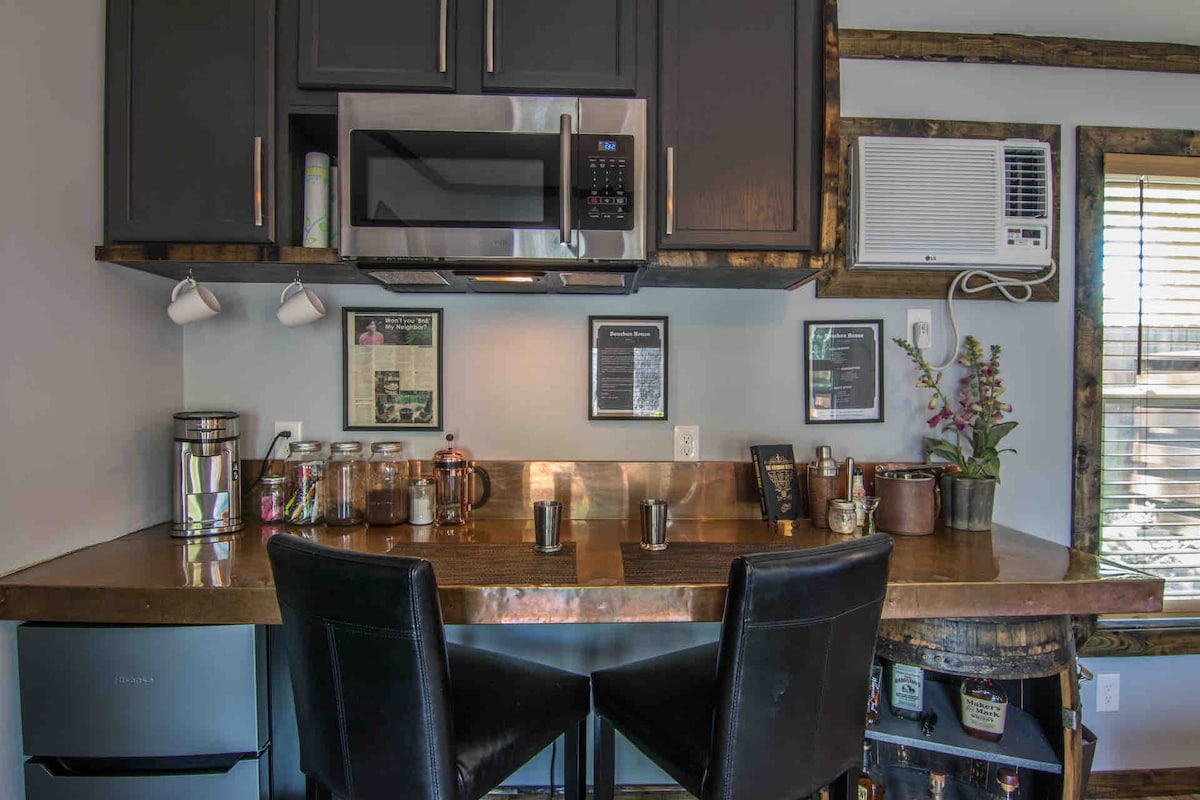 Bem-vindo ao "The Bourbon House" no centro de Lexington, o local ideal para ficar para uma autêntica experiência em Kentucky. Esta casa de campo foi construída por mim do zero, sem detalhes poupados para mergulhar meus hóspedes nas melhores coisas que Kentucky tem a oferecer - Misturadores de bar de bourbon totalmente abastecidos! (Você fornece bourbon) Casa artesanal e mobiliário de madeira recuperada e barris de bourbon, banheira de hidromassagem privada, roupões de banho, jardim, lareira e a uma curta distância a pé do centro da cidade e da arena Rupp
