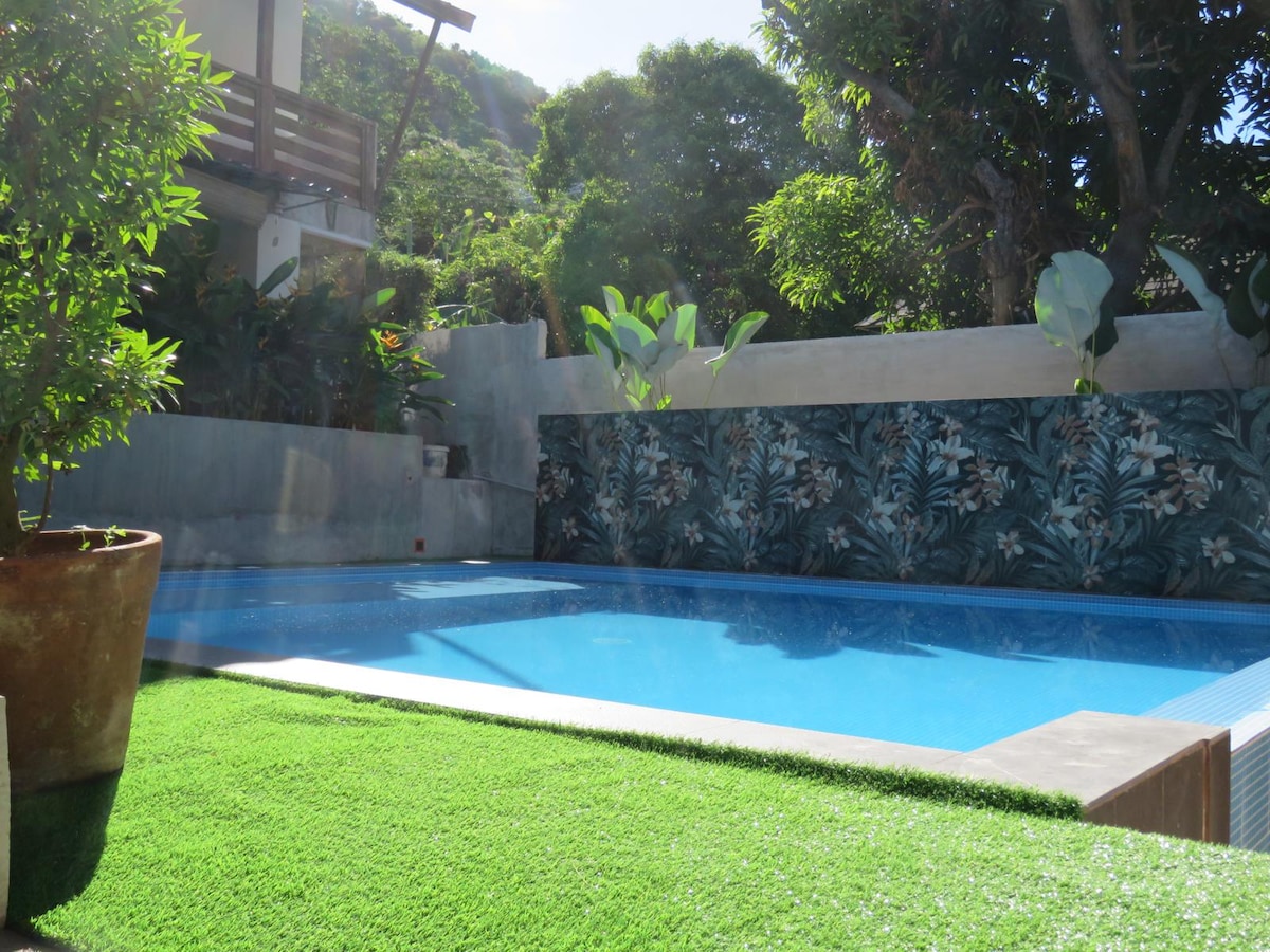 Fuja do calor do verão neste santuário refrescante de Nasugbu com uma piscina privada e vistas majestosas para a montanha! Situado perto do sopé do Monte. Batulao, a nossa casa de hóspedes artística é a derradeira barkada de verão ou escapadela em família. Quer esteja a mergulhar na piscina privada, a fazer um churrasco sob as estrelas ou a desfrutar do ar condicionado split, este é o seu refúgio longe da cidade. Desfrute de um retiro na natureza com comodidades premium, acesso Wi-Fi de alta velocidade e o ar fresco de Batangas.