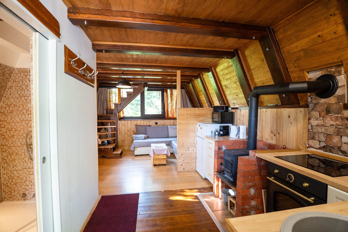 Esta moderna casa de madeira com dois apartamentos separados é a escolha perfeita para quem viaja em casal e quer um alojamento tranquilo em contacto com a natureza. A casa fica a 5 minutos de carro do Parque Nacional dos Lagos de Plitvice. A casa é composta por dois apartamentos separados, cada um com a sua própria entrada e terraço separado. O apartamento tem um piso térreo e um quarto no andar de cima.