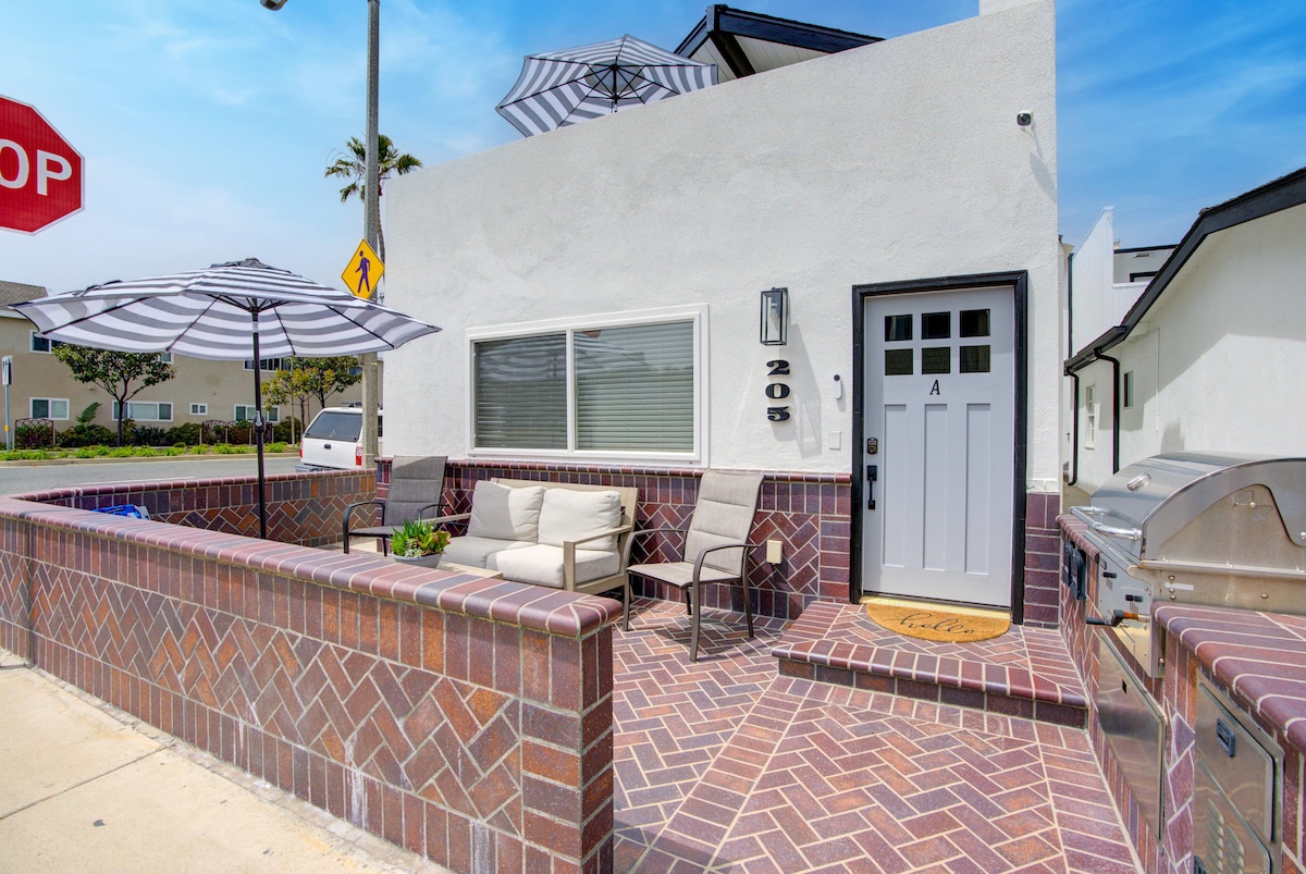 Localização, localização, localização. Todos beneficiam desta localização. Quer queira fazer compras, caminhar, exercitar-se, surfar, jantar ou apenas sair, todos estão felizes. Unidade de 2 quartos e 1 casa de banho atualizada e decorada com bom gosto, com ar condicionado, carregador de veículos elétricos, um lugar de garagem. Esta é a unidade inferior de um duplex. Toalhas, lençóis, cadeiras de praia, toalhas de praia, guarda-sóis, brinquedos de praia, pranchas de boogie e refrigeradores disponíveis para seu uso. Quatro bicicletas com cestos e fechaduras. Traga o seu fato de banho! Wi-Fi e ar condicionado.