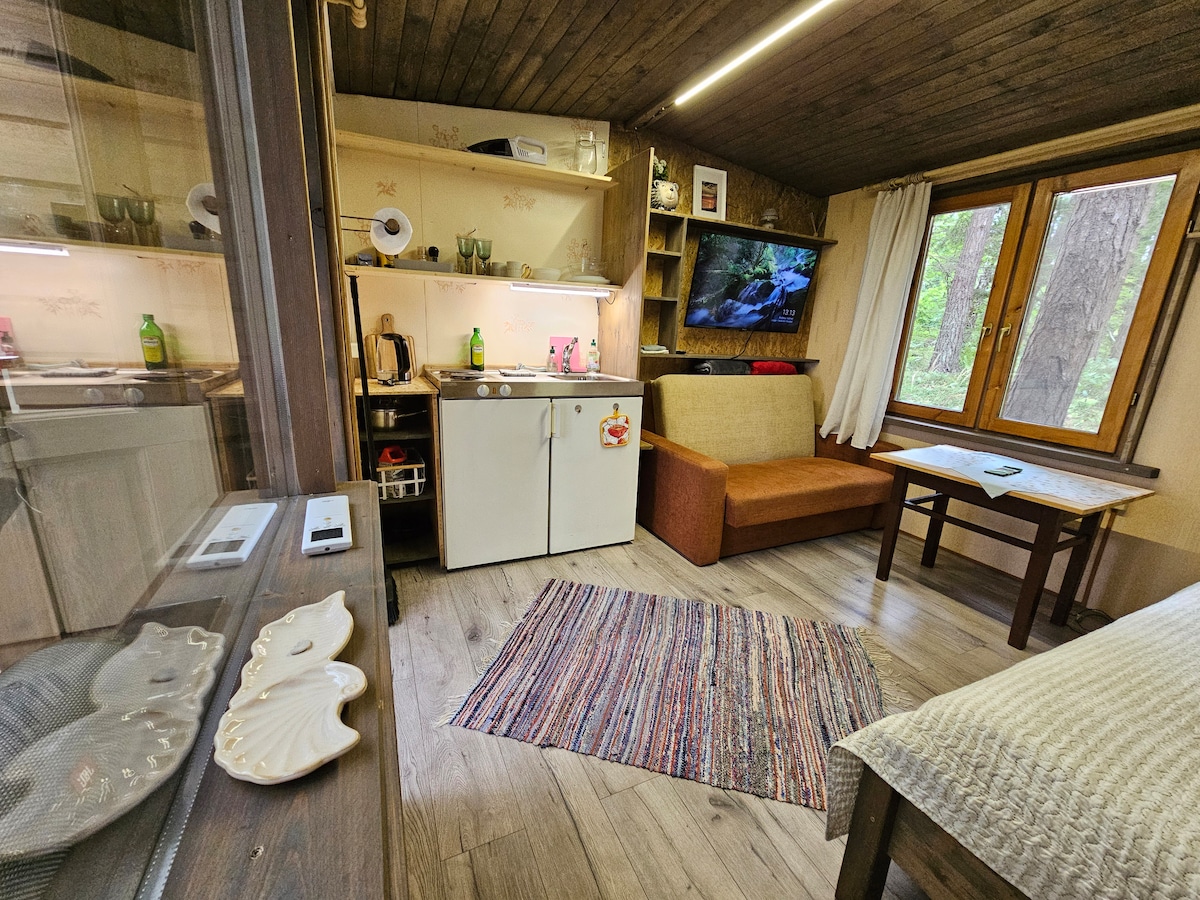 Desfrute da bela localização natural desta casa romântica. Na própria costa do mar, em meio a pinheiros, há uma pequena casa móvel com eletricidade, água quente e fria, chuveiro, fogão a gás, geladeira. Na casa você encontrará duas camas - uma de casal, outra de solteiro, com roupa de cama e toalhas. Há pratos, panelas e frigideira. No quintal da casa há uma churrasqueira, um terraço com mesa e cadeiras, uma casa de coração. Carvão para a churrasqueira e água potável devem ser trazidos pelos próprios hóspedes.