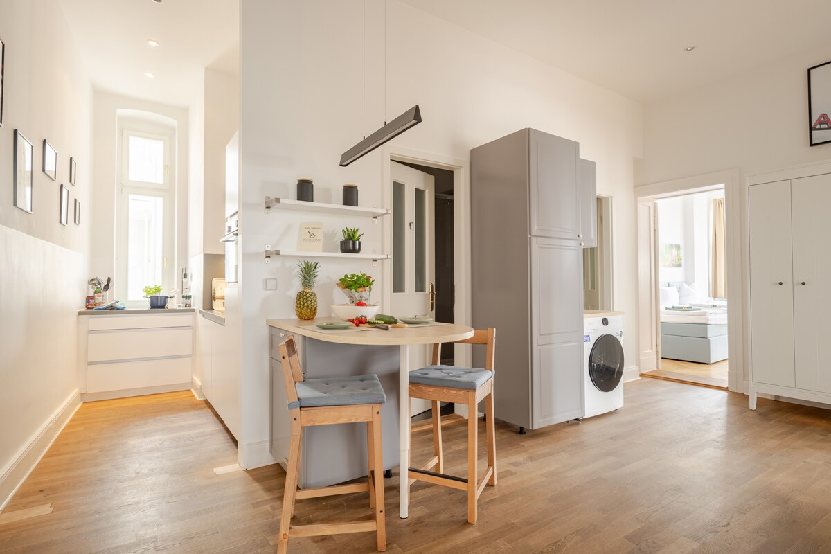 🌆Imagine acordar na lendária Kurfürstendamm e abrir os olhos no seu apartamento urbano, luminoso e espaçoso, no coração de Charlottenburg. Os apartamentos variam entre 20 m² e 37 m² e oferecem muito espaço para se sentir em casa – perfeitos para duas pessoas que queiram descobrir Berlim juntas com estilo. As estadias de longa duração são sempre possíveis!