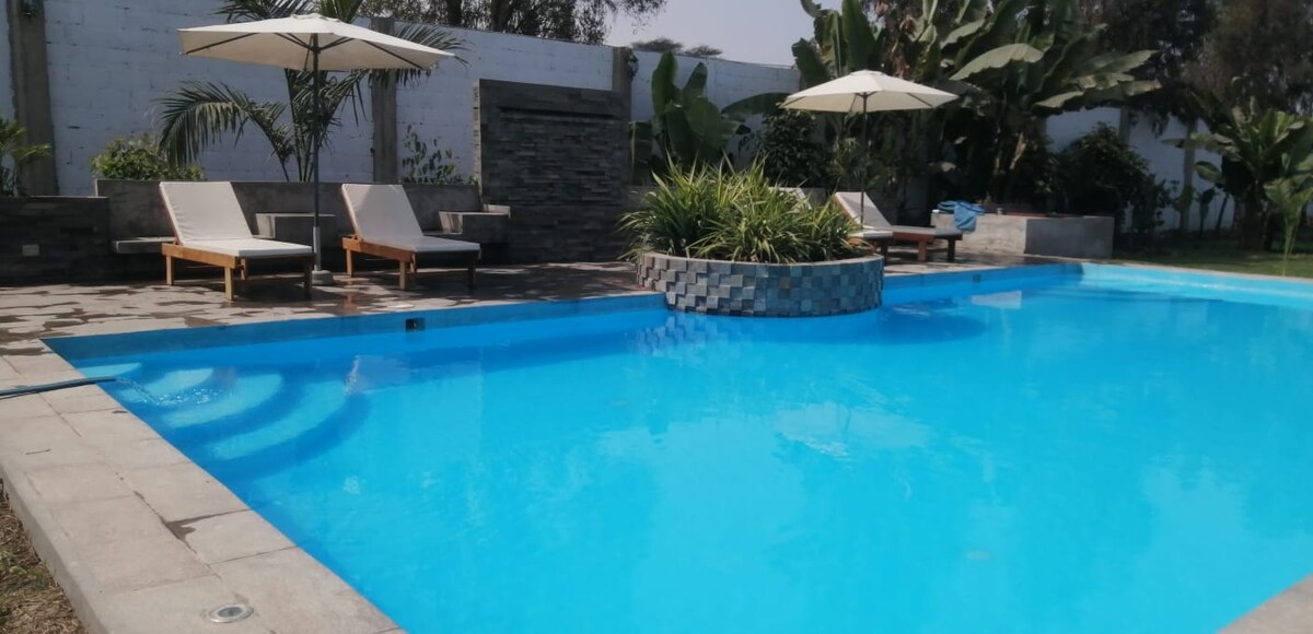 Desfrute com a família e amigos neste alojamento cheio de harmonia e paz. A casa fica num condomínio de 2 casas a 3 quarteirões do oval de Cieneguilla, ao qual pode chegar facilmente de carro de serviço. A área é uma área residencial, rodeada por árvores e paisagens. Vai acordar com o canto dos pássaros. Se quiser uma pausa agradável, estamos à sua espera. Para um check-in antecipado e um check-out tardio, será cobrado S/35 por hora, mediante pedido.