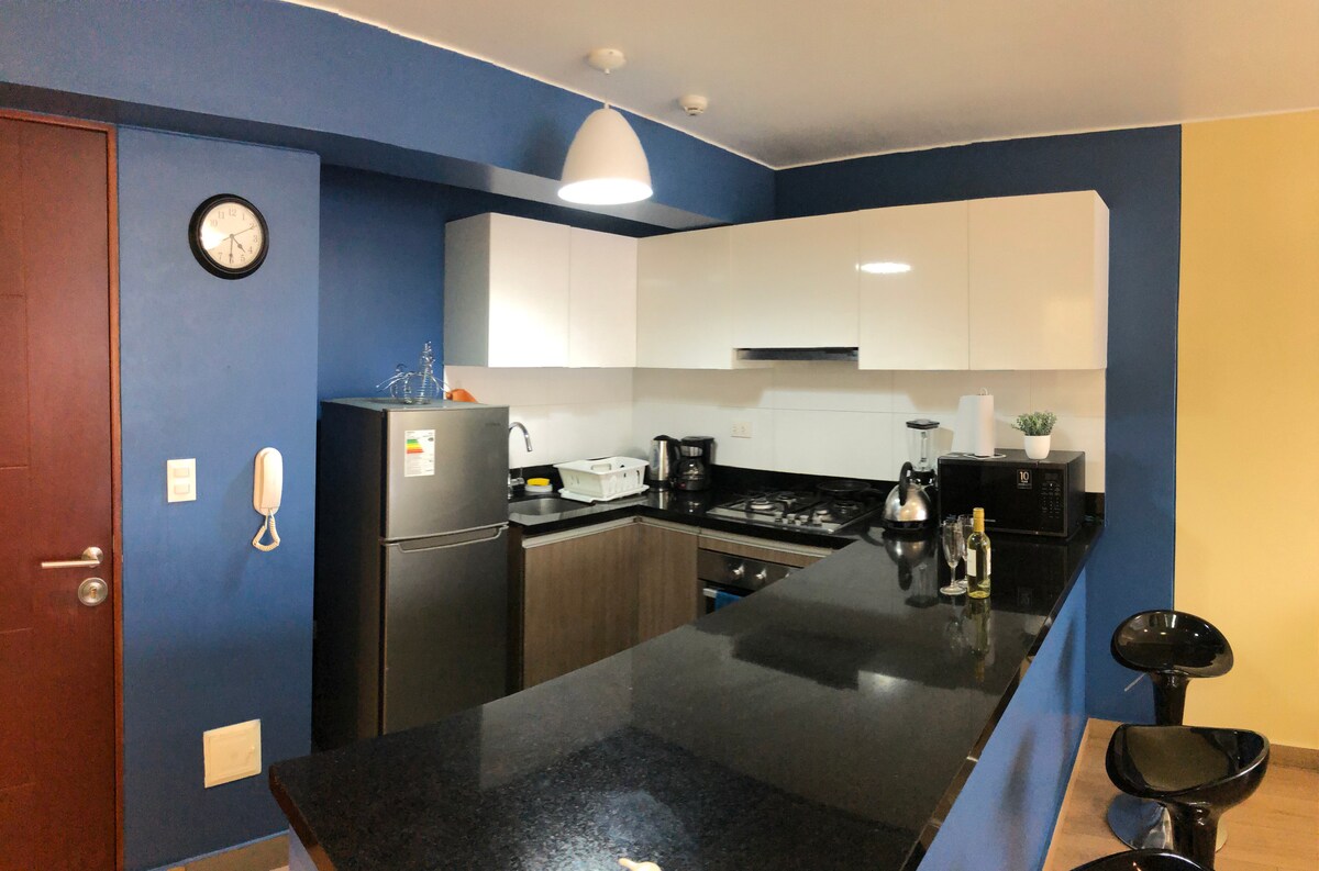 Bienvenido a tu hogar en Lima, disfruta de un departamento moderno, cómodo y totalmente equipado, ubicado a solo 1 cuadra de Miraflores y con acceso rápido al Malecón, Larcomar, restaurantes, cafés y la Vía expresa. Ideal para turistas, viajeros de negocios y estancias cortas o largas. 72+ reseñas de 5 estrellas avalan la experiencia de nuestros huéspedes. Lo que mas disfrutaras: Ubicación Privilegiada, pasos de Miraflores y del Metro de Lima. Estacionamiento (Consultar disponibilidad).