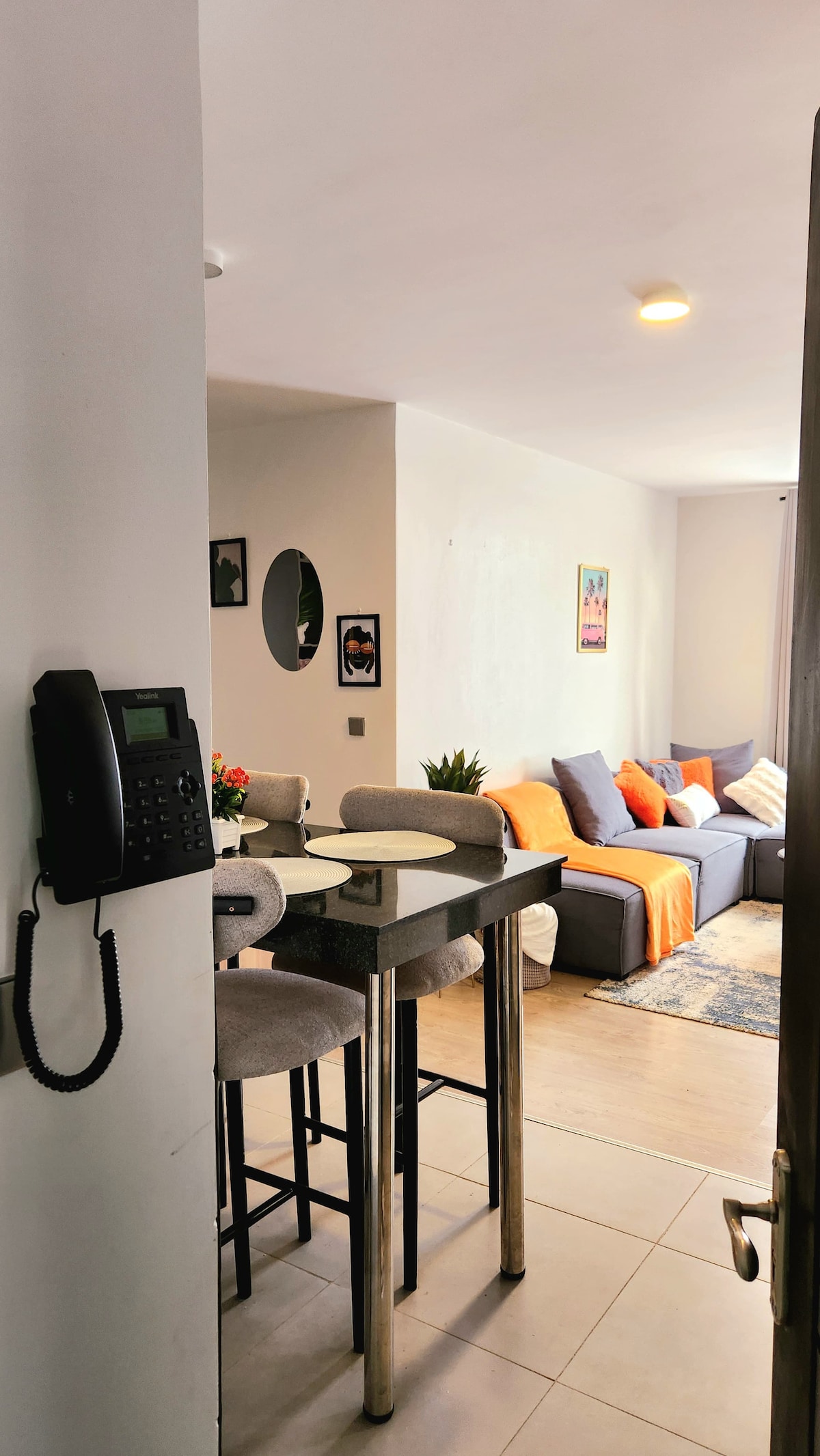 Bem-vindo ao Cosy Corner Retreat, um apartamento moderno e elegante de 1 quarto, perfeitamente localizado junto à autoestrada. Desfrute de uma área de estar acolhedora, cozinha totalmente equipada e uma cama confortável para noites tranquilas. Com acesso Wi-Fi de alta velocidade, smart TV e estacionamento seguro, é o alojamento ideal para viajantes que procuram conforto, conveniência e uma verdadeira sensação de casa longe de casa. Localizado perto da Escola de Governo do Quénia e da escola de negócios UoN Lower Kabete