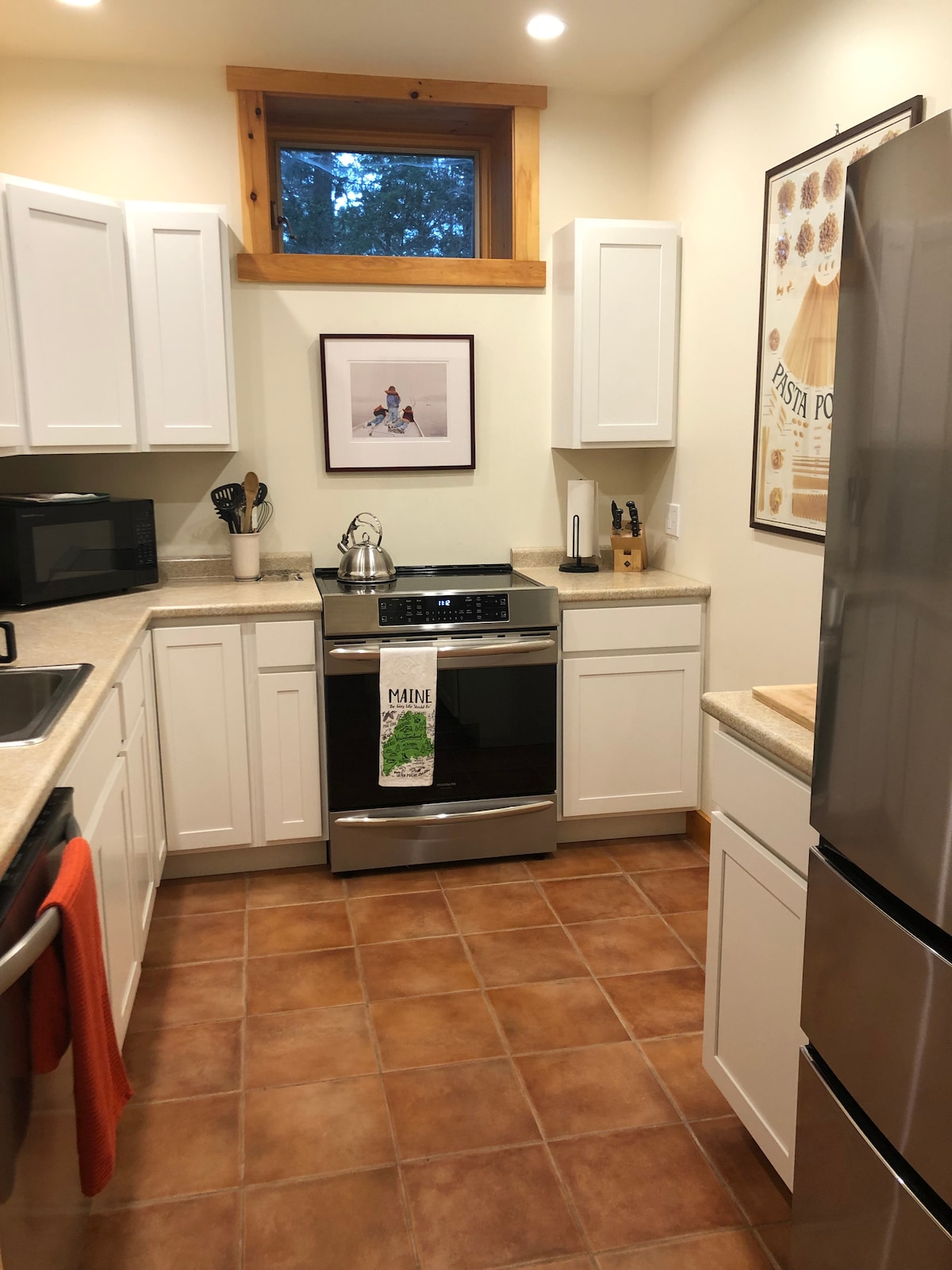 A Casa do Peixe é um edifício separado adjacente à nossa casa em 3 1/2 acres privados em um bairro HOA privado e pacífico, com estrada pavimentada e utilitários de cabo. A vida selvagem é abundante com raposas, águias, grandes garças azuis, águias carecas e focas. Temos vários jardins com plantas floridas, mirtilos, legumes e ervas que compartilhamos com os hóspedes durante toda a temporada de cultivo. Estamos a uma hora e meia ao norte de Portland e a meia hora dos melhores restaurantes da área de Midcoast!