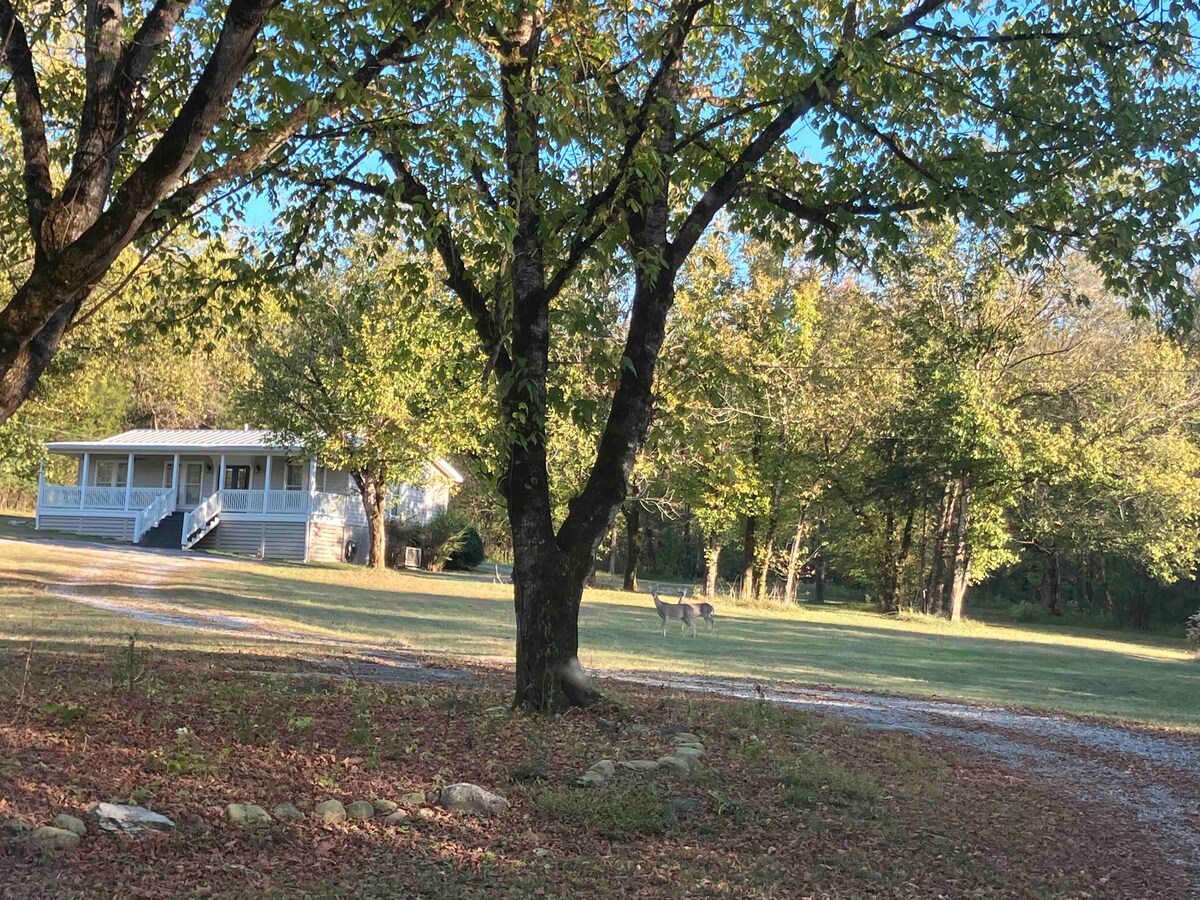 Desfrute da vida tranquila no campo e dos belos espaços ao ar livre, com uma varanda coberta, pátio com churrasqueira e lareira, parque infantil e balanço na varanda da frente. Localizada perto das destilarias Jack Daniel's e Nearest Green, nossa casa foi totalmente renovada e está pronta para você relaxar e descontrair. Você experimentará todas as conveniências modernas de casa, incluindo ótimo Wi-Fi, TVs 4K e uma cozinha totalmente abastecida.