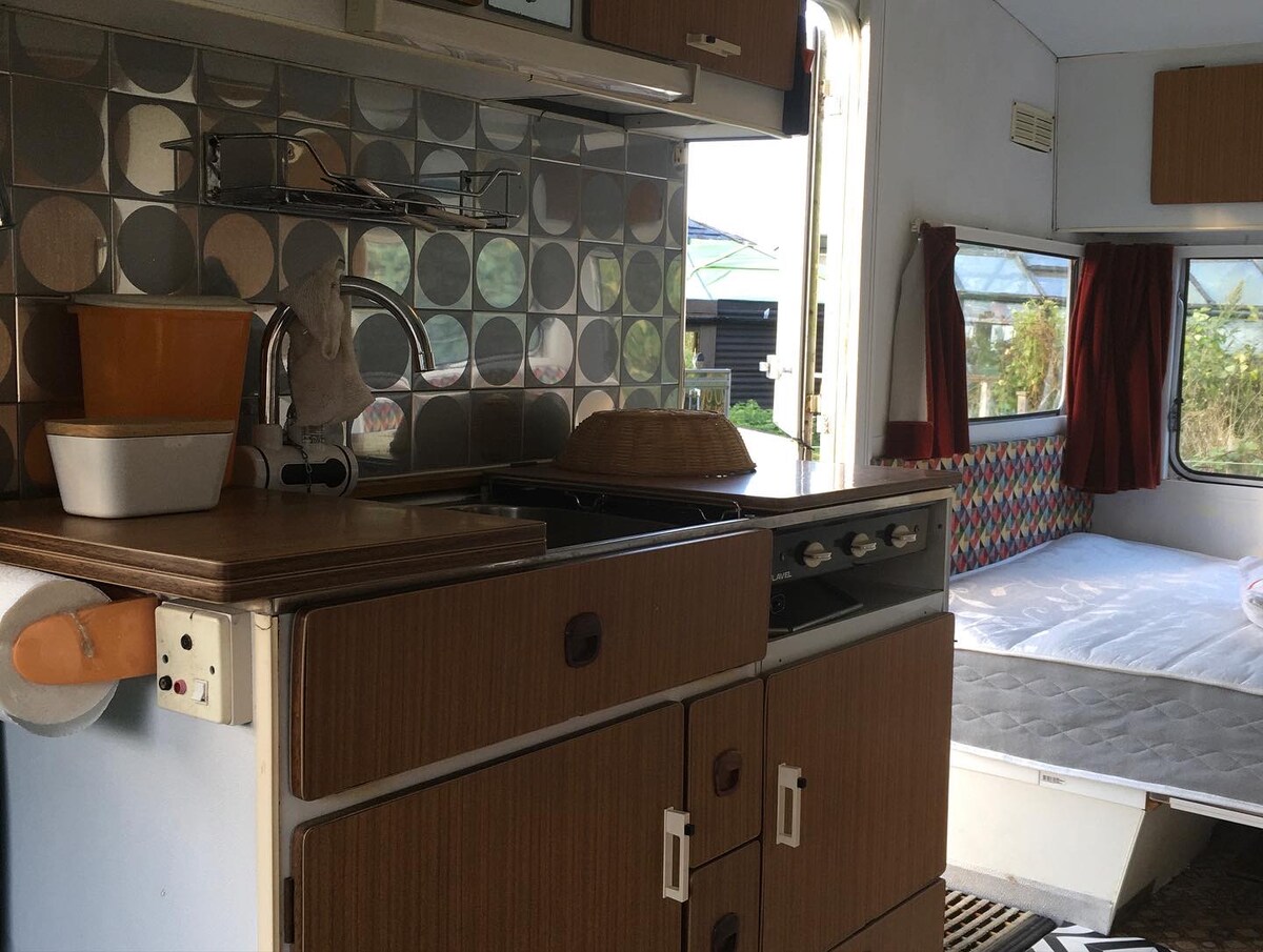 Alojamento ao ar livre elegante numa parte tranquila de Lincolnshire North Gulham fica a 15 minutos de carro do Caistor; a 15 minutos do Mercado Rasen Spa no local; cozinha exterior coberta e área de refeições com eletricidade, iluminação, chaleira elétrica e grelhador a carvão (é necessário trazer o seu próprio carvão e lenha para a lareira exterior, que também tem uma grelha). O alojamento, fantástico e excêntrico, nesta zona tranquila, é uma caravana decorada com uma pintura elegante e requintada, com interiores bem equipados que são igualmente originais.