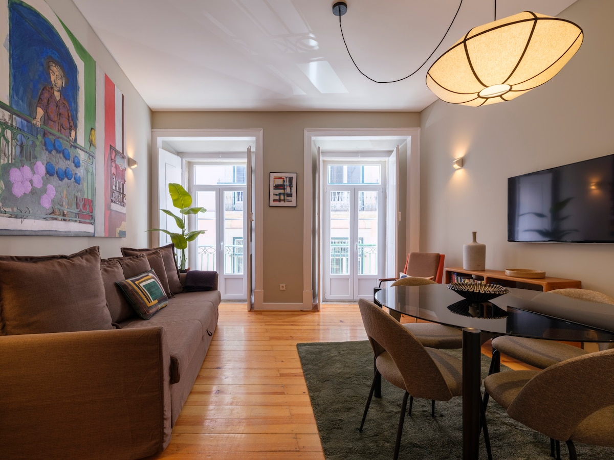 Apartamento aconchegante no 1º andar. Ar-condicionado e varandas. Distrito Central do Chiado