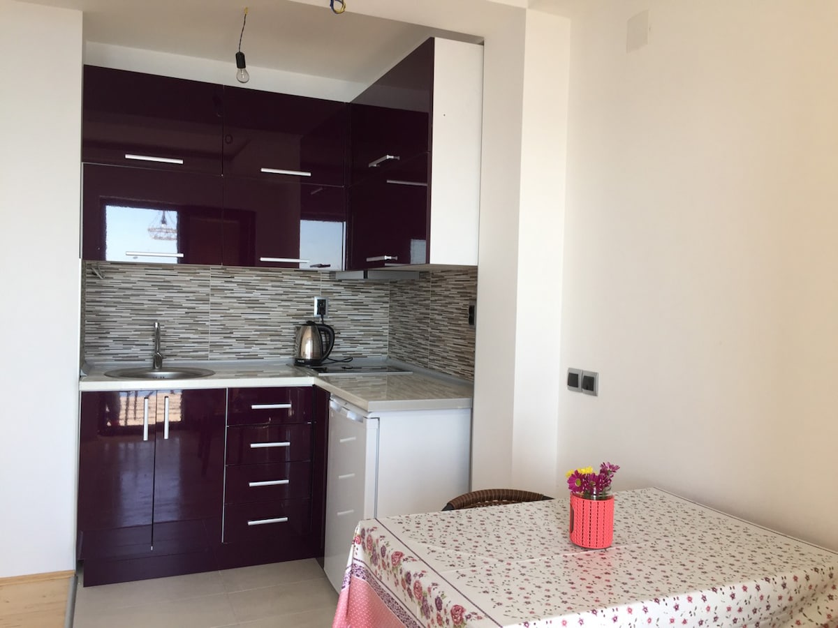 O apartamento está localizado não muito longe do centro. É um apartamento novo que atende a todas as condições de uma casa (cozinha completa, máquina de lavar roupa, varanda com uma bela vista, etc.). Você deve visitar para entender que não há nada faltando para desfrutar de Pogradecin.