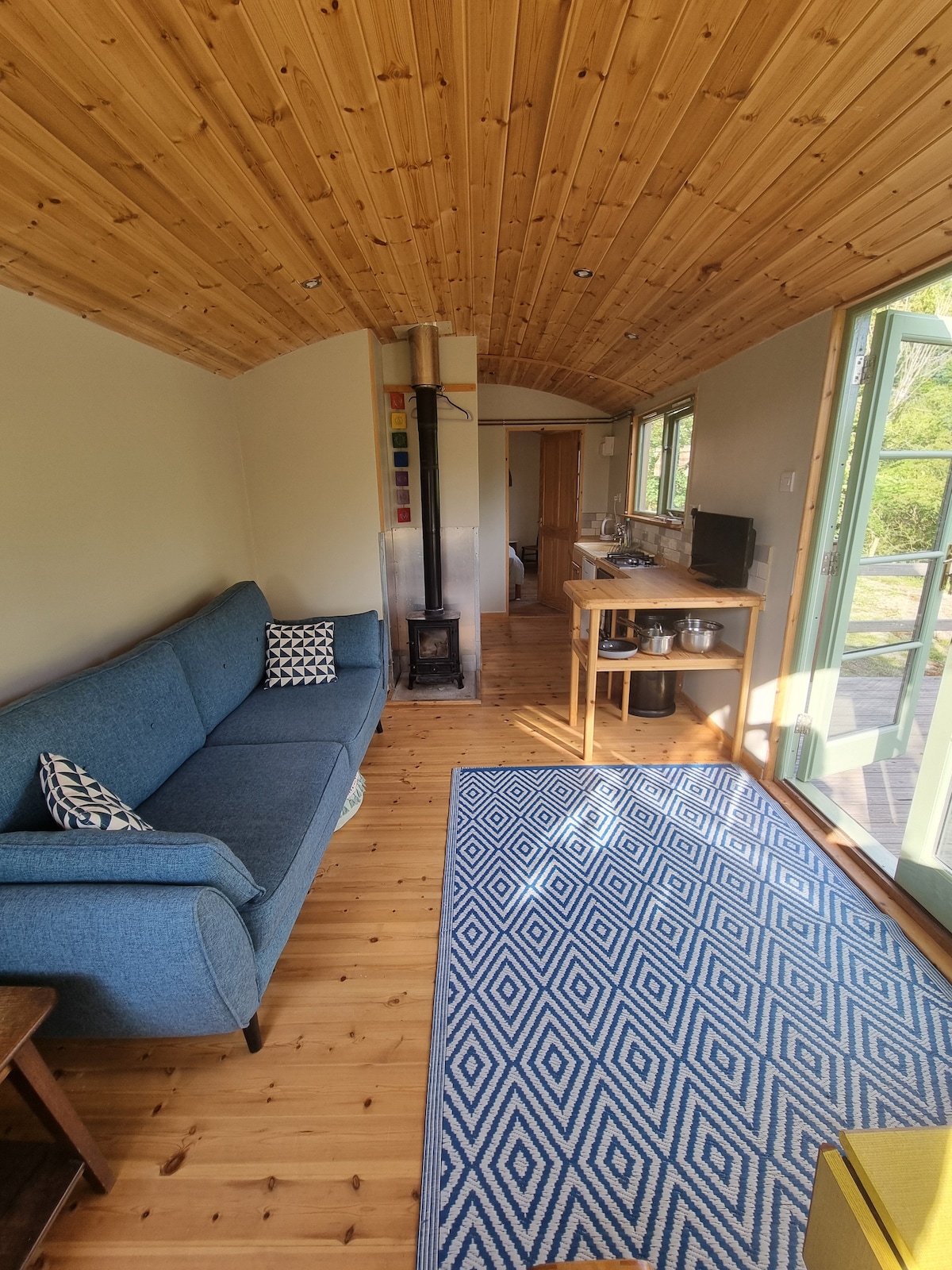 Configuração com tudo o que você pode precisar, incluindo roupas de cama e toalhas. Com dois quartos duplos, banheiro e um grande espaço de estar, isso é perfeito para uma escapada tranquila ou um lugar para aventura em família. Cozinha totalmente equipada, incluindo geladeira/freezer, Air Fryer, micro-ondas, queimador de lenha aconchegante e uma loja de madeira abastecida. Jantar dentro ou fora no deck; mesas e cadeiras são fornecidas e uma churrasqueira privativa na área do pátio sentado para aquelas noites de verão com uma boa taça de vinho.