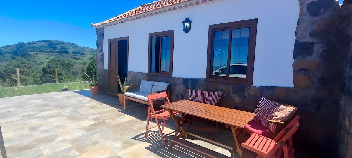 Detached holiday home on the 7.5 ha Hacienda La Palma estate. Absolute tranquillity and seclusion with a unique microclimate. In the middle of the vineyard, La Placita offers a cosy refuge for 2 people. Enjoy your best days with incredible views of the endless Atlantic Ocean and a sky with fantastic cloud formations, which turns into a clear starry sky after a glowing red sunset at night.