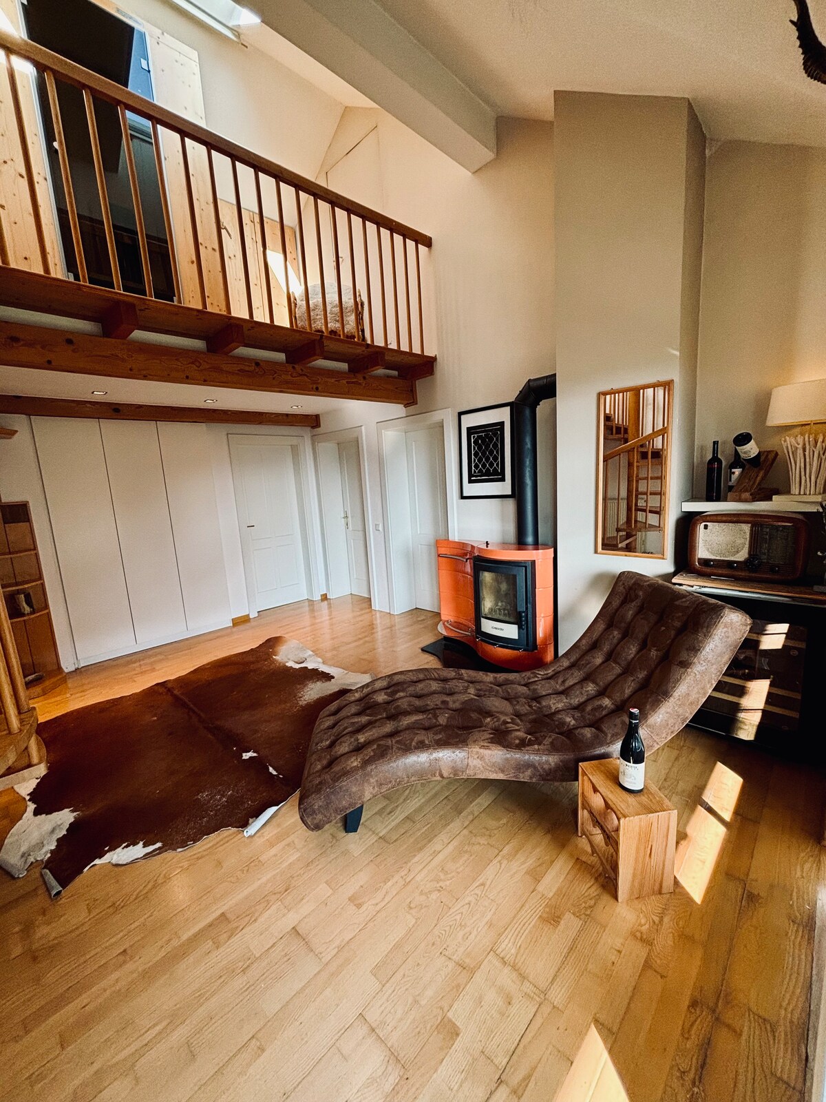 Loft im Atelier Dieses stylishe, gemütliche Loft in Etienne's Atelier liegt am Waldrand außerhalb von Bad Ischl im Salzkammergut. Kunst- und Naturliebhaber kommen hier voll auf ihre Rechnung. Gehe auf Tuchfühlung mit dem Künstler Etienne, der im Erdgeschoß des Ateliers malt. Die Aussicht auf die malerische Bergkulisse ist berauschend. Von der Terrasse auf der Ostseite, kannst du beim Frühstück die Morgensonne genießen und hast einen wunderbaren Blick auf den Garten mit Teich und Grillplatz.