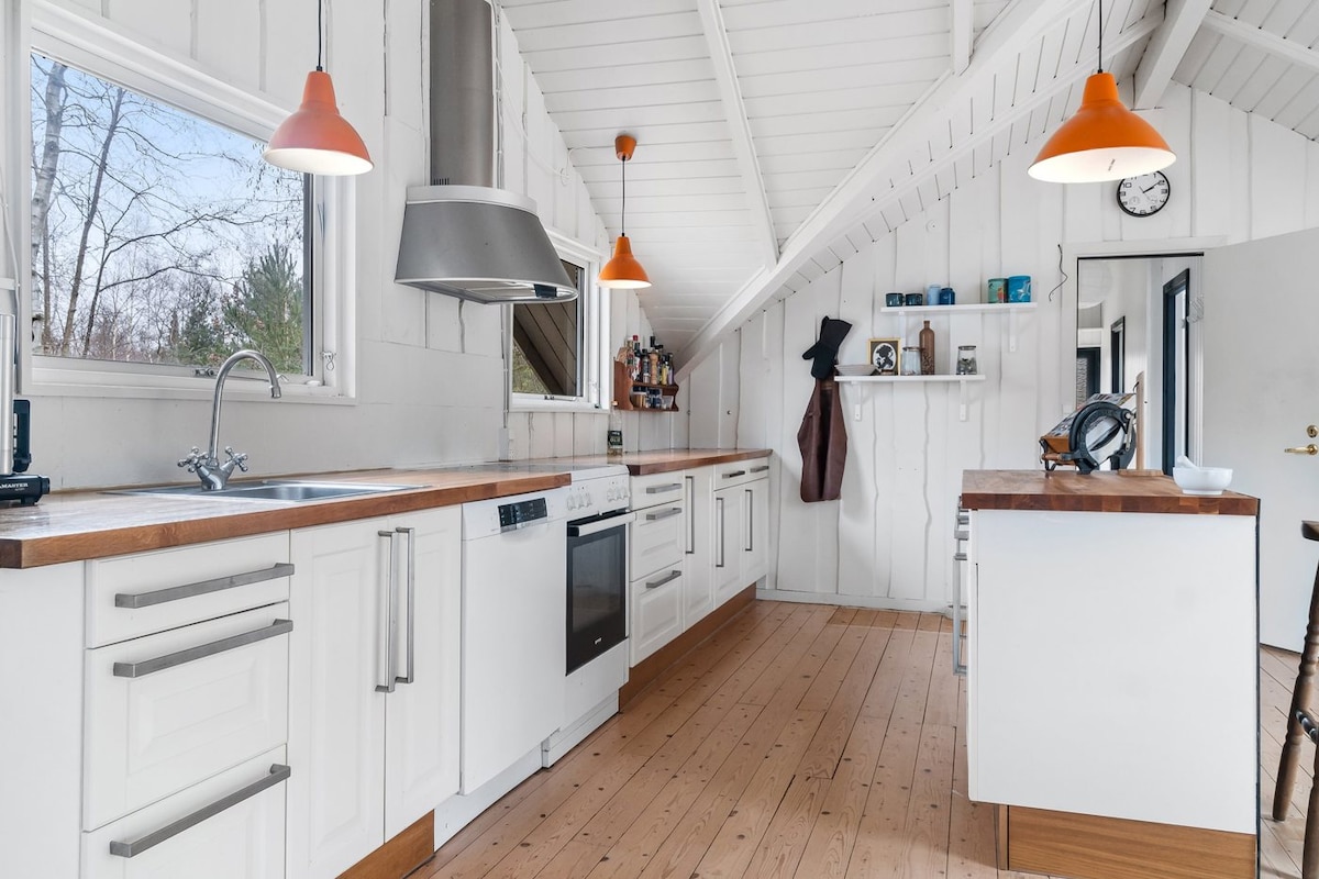 Se você está procurando uma estadia romântica ou uma experiência muito especial com a família, aqui está a oportunidade. Você pode desfrutar da bela vista do fiorde em paz e tranquilidade, enquanto o fogo o aquece. Você tem seu próprio cais, a floresta no seu quintal, um bom fundo arenoso e boas condições de banho. A área é tranquila, com uma vida selvagem muito rica. Pegue nosso barco a remo emprestado para um passeio de barco ou se você quiser pescar no fiorde. As compras podem ser feitas em Nakskov, então pegue nossas bicicletas emprestadas e faça um passeio agradável pela floresta.