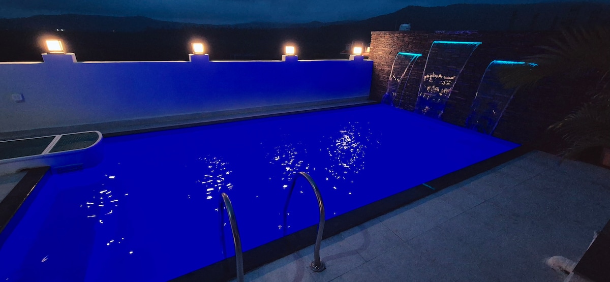 Bem-vindo à Navya Villa, que oferece uma vista de 360* para a montanha. A nossa moradia é um refúgio perfeito para quem procura ficar perto dos limites da cidade, mas longe da agitação da população e do caos, aninhada entre as majestosas montanhas. Nade e desfrute da nossa piscina privada ou vá para o terraço ou para o jardim e mergulhe nas vistas panorâmicas deslumbrantes que se estendem até onde os olhos podem ver, criando um espetáculo hipnotizante.