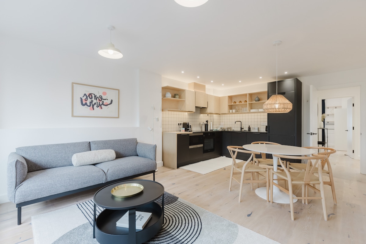 1 en-suite double bedroom, 1 double bedroom, 1 family bathroom in a penthouse duplex apartment, benefiting from 2 private terraces. Positioned in a secure gated apartment block, overlooking Regents Canal, situated 5 min walk to Haggerston Overground Station. The location of this apartment, is very well connected to the London Metro and Bus services. This makes travelling around london very easy for sightseeing and also enables you to get to all London airports within an hour.