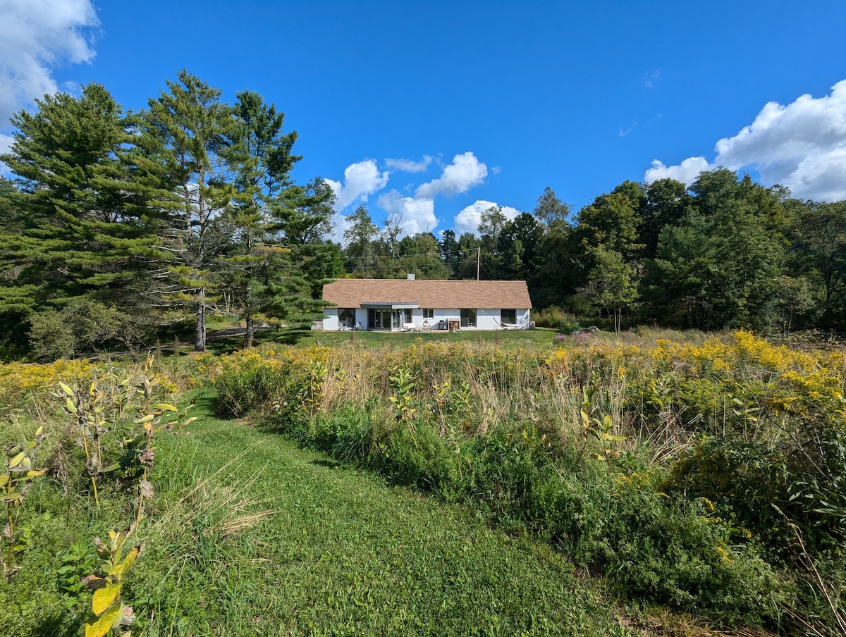 Fique em nosso retiro relaxante de meados do século! A casa foi construída nos anos 60, mas tem comodidades modernas. Recomenda-se um veículo com tração nas 4 rodas. Nossa casa está convenientemente localizada a 7 milhas de Stratton e a 12 milhas dos outlets/restaurantes em Manchester. Janelas do chão ao teto proporcionam uma vista deslumbrante da propriedade. Observe que a casa tem uma lareira que não funciona.