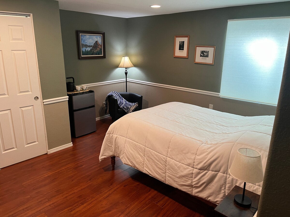 Desfrute do seu próprio apartamento privado com acesso ao espaço aberto + vista incrível para o Pikes Peak num bairro tranquilo. Este espaço de 650 pés quadrados inclui uma acolhedora sala de TV, cozinha completa (sem forno), quarto king e casa de banho moderna com chuveiro walk-in. Relaxe com todos os confortos de casa e a sua própria entrada privada, perfeita para uma escapadela tranquila ou uma estadia prolongada. *NÃO É UM NOVO ANÚNCIO* aparece como um novo anúncio, mas somos anfitriões há 5 anos. Perdemos as nossas avaliações antigas quando mudámos de perfil :(