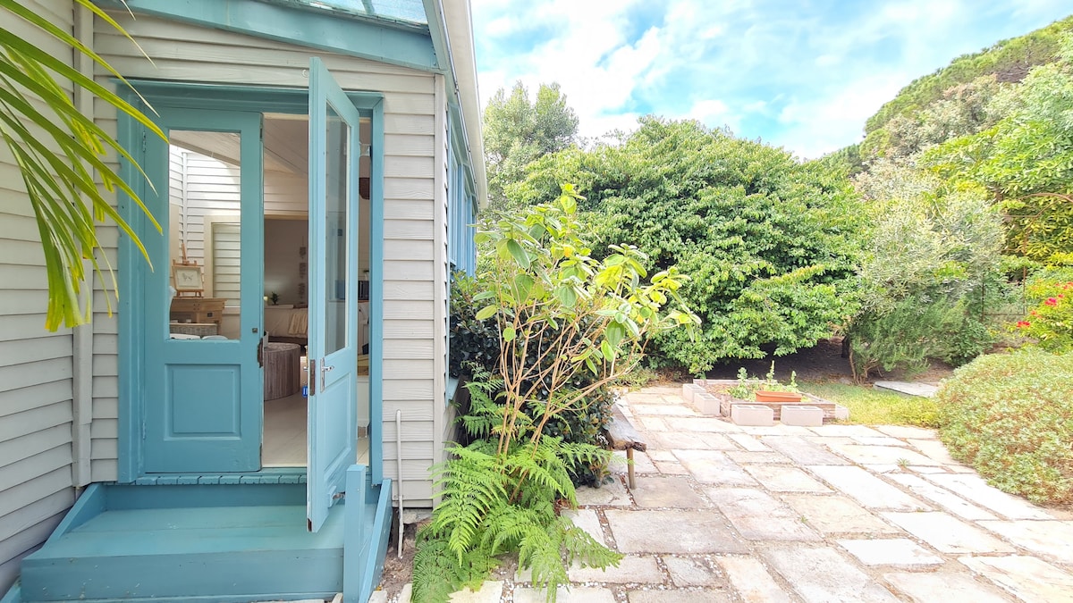 Um antigo estúdio de arte foi transformado em uma bela casinha que está anexada à casa principal com vista panorâmica do vale da sua cama e jardim. Mais acima na montanha de Kronenzicht, em um tranquilo cul-de-saq, você pode relaxar enquanto dá um mergulho em sua banheira de hidromassagem privada e aquecida, relaxar sob o chuveiro de efeito chuva com vistas deslumbrantes na parte de trás da montanha da mesa e do pequeno lionshead ou começar sua caminhada ao pôr do sol nas belas dunas de areia ao lado de nossa propriedade, até Sandy Bay.