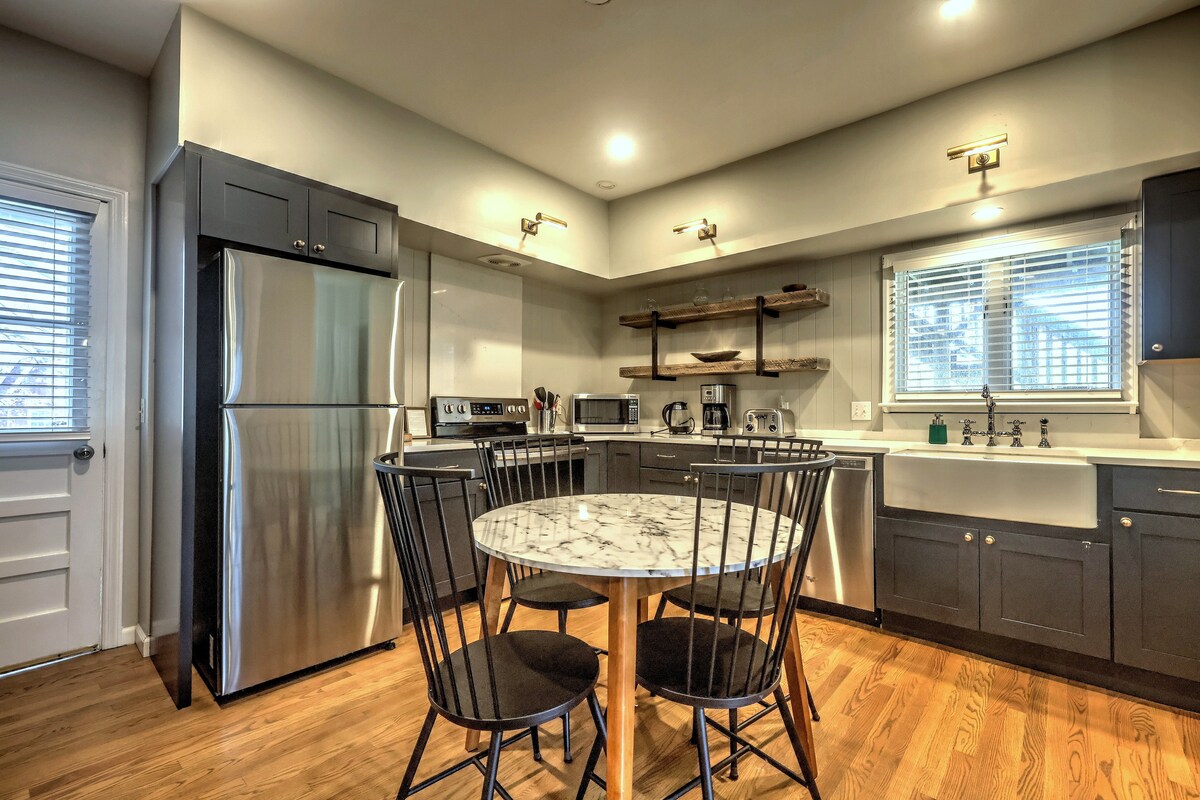 Perfeito para famílias e grupos! Esta unidade de 3 camas e 1 casa de banho está localizada no 1º andar de uma quinta da virada do século, equipada com comodidades modernas. A unidade foi concebida especificamente para uso da Airbnb e tem uma sensação de hotel boutique. Desfrute de pisos de madeira, colchões de espuma Queen Memory, tetos altos, fechadura com teclado numérico (sem chaves necessárias), ar central, deck privado e belas vistas de um quintal de 1 acre com pomar de maçã adjacente. Não são permitidas festas ou eventos.